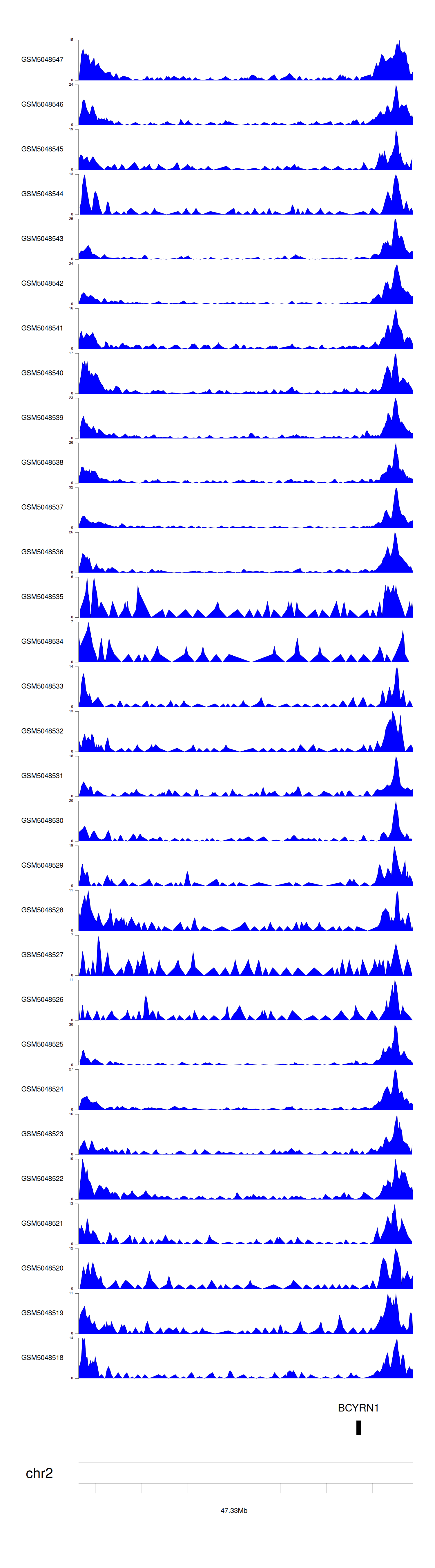 > Dataset: GSE220859 - BCYRN1 peak across samples