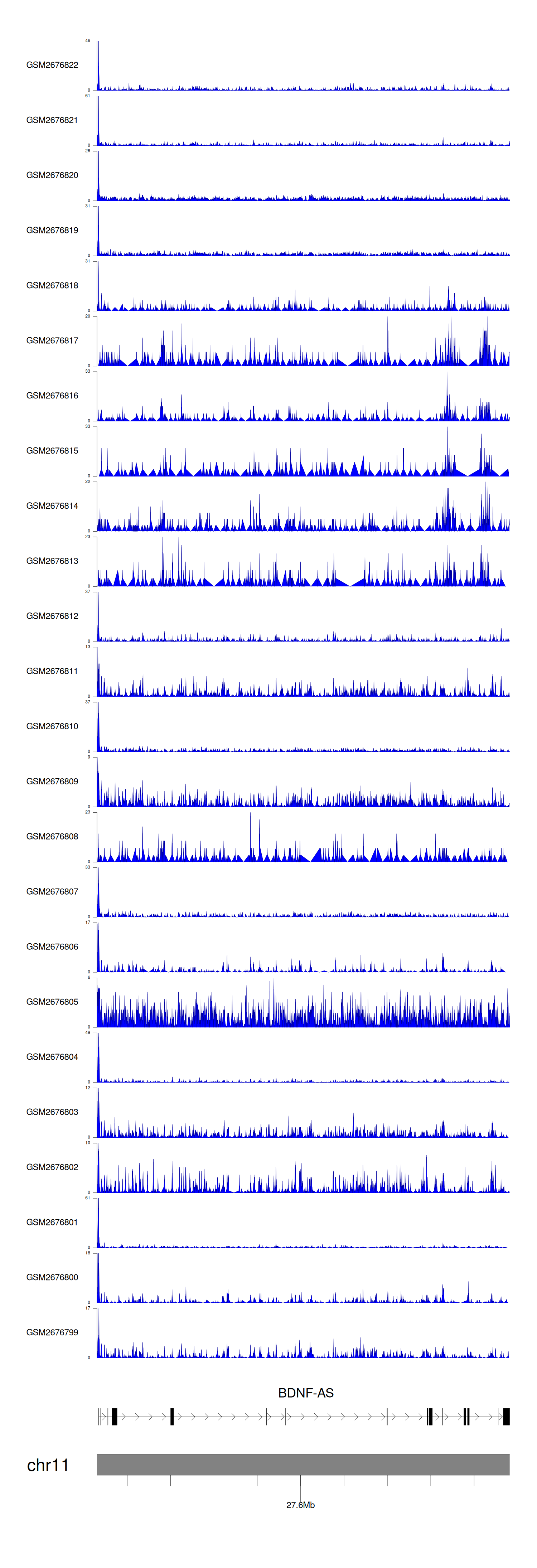 > Dataset: GSE30738 - BDNF-AS peak across samples