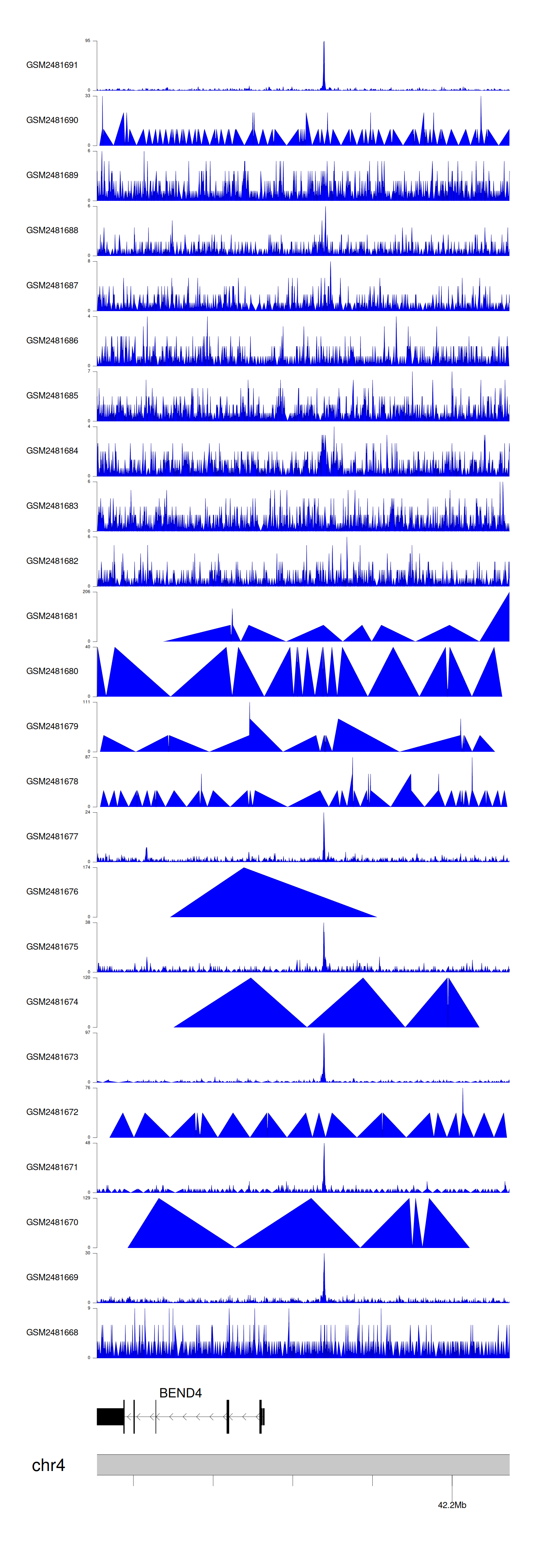 > Dataset: GSE94732 - BEND4 peak across samples