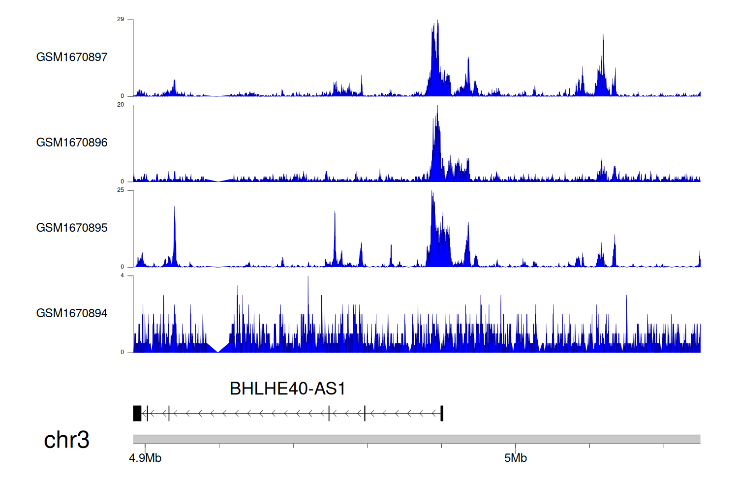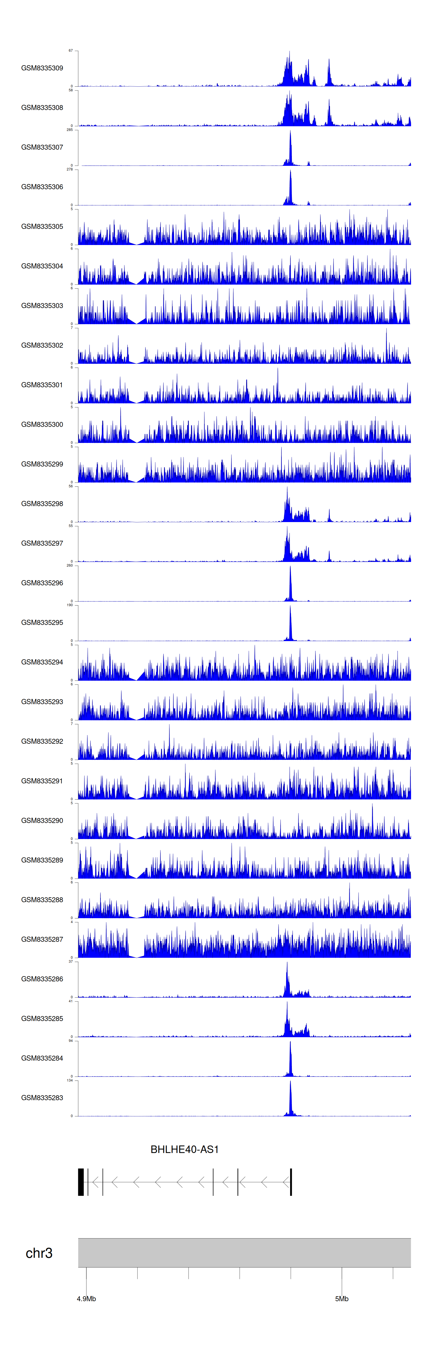 > Dataset: GSE270130 - BHLHE40-AS1 peak across samples