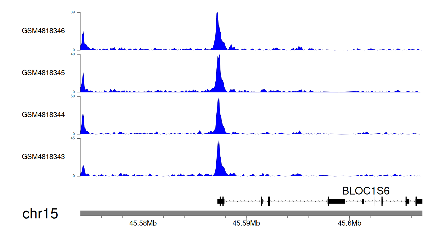 > Dataset: GSE131257 - BLOC1S6 peak across samples