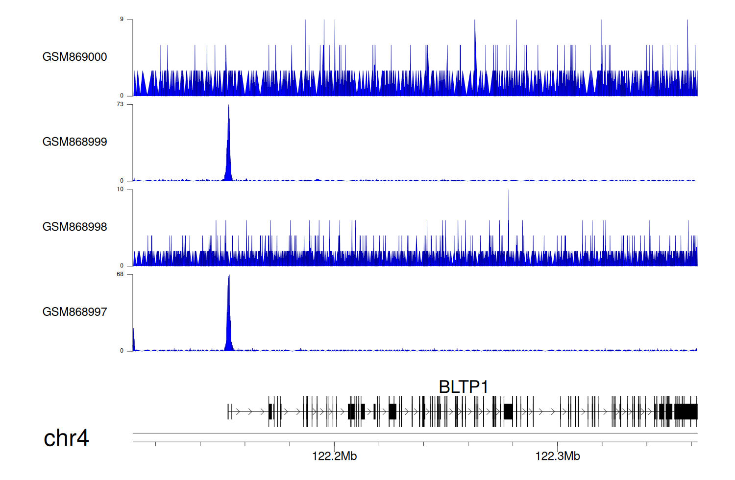 > Dataset: GSE68402 - BLTP1 peak across samples