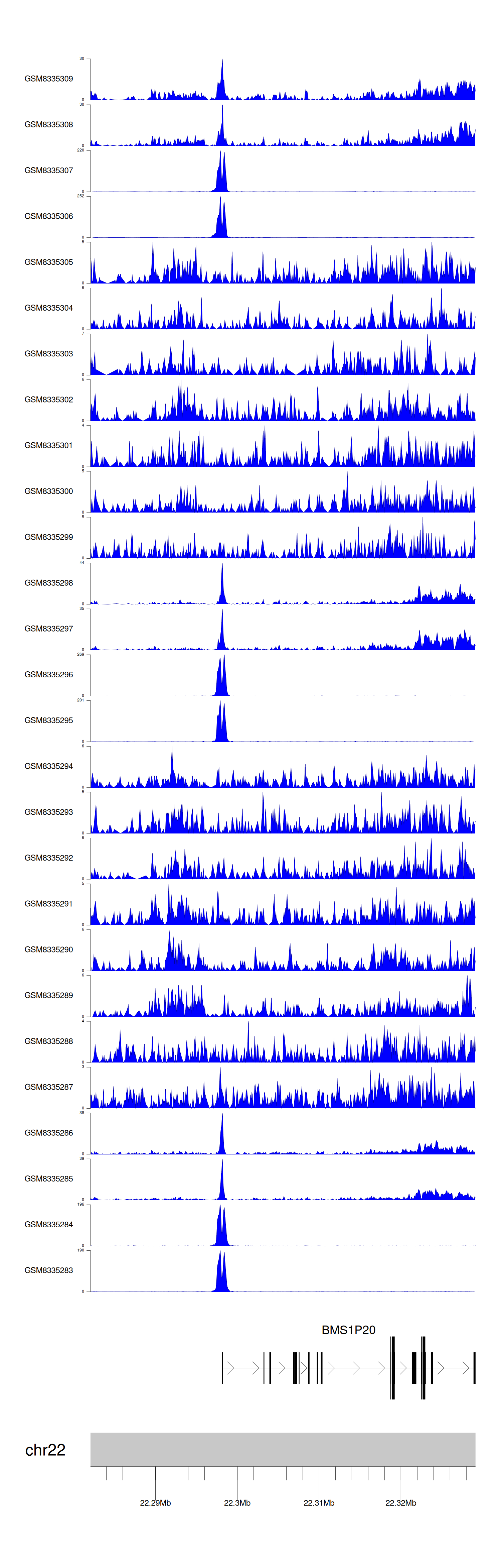 > Dataset: GSE270130 - BMS1P20 peak across samples