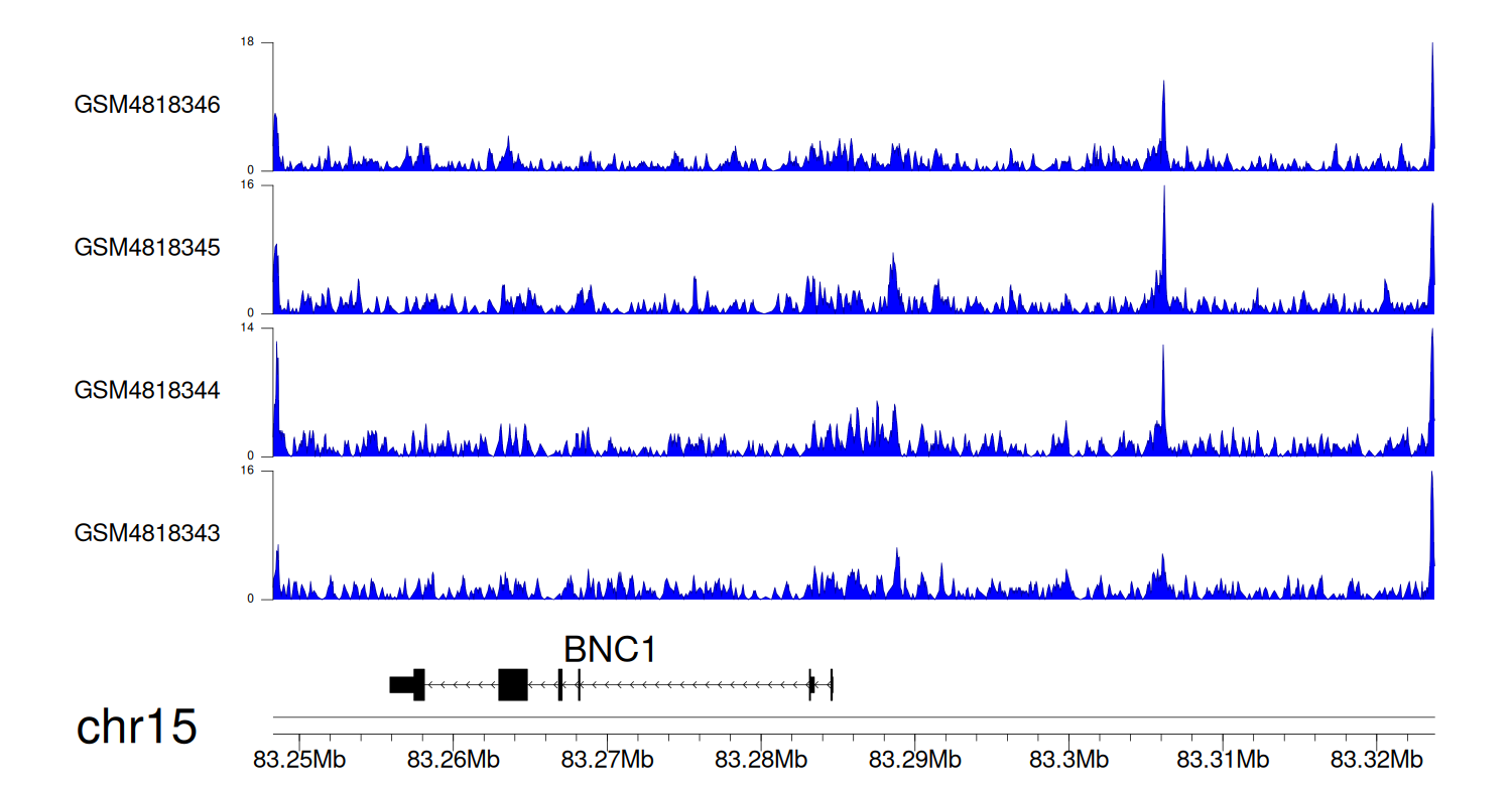 > Dataset: GSE131257 - BNC1 peak across samples
