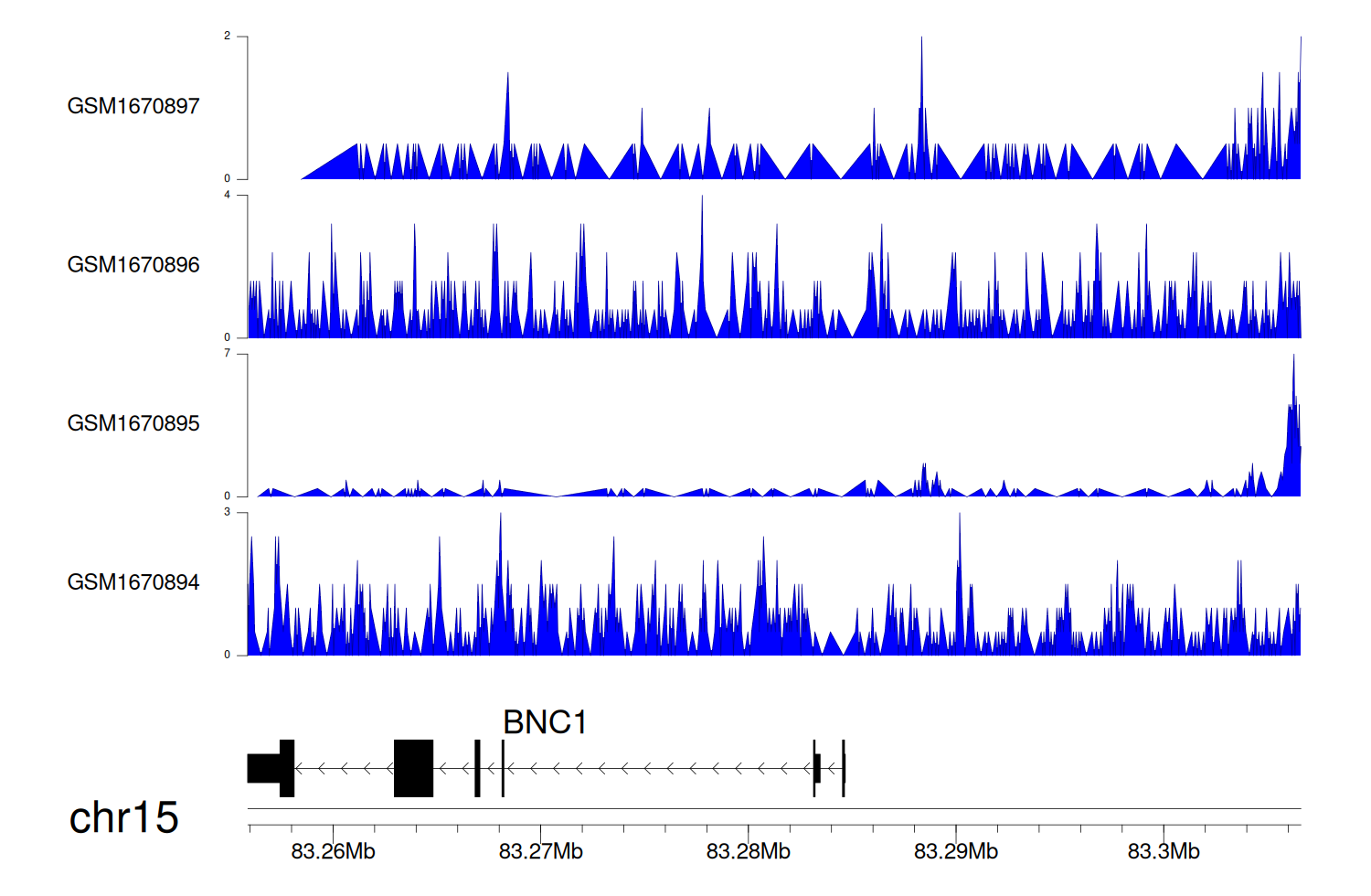 > Dataset: GSE68402 - BNC1 peak across samples