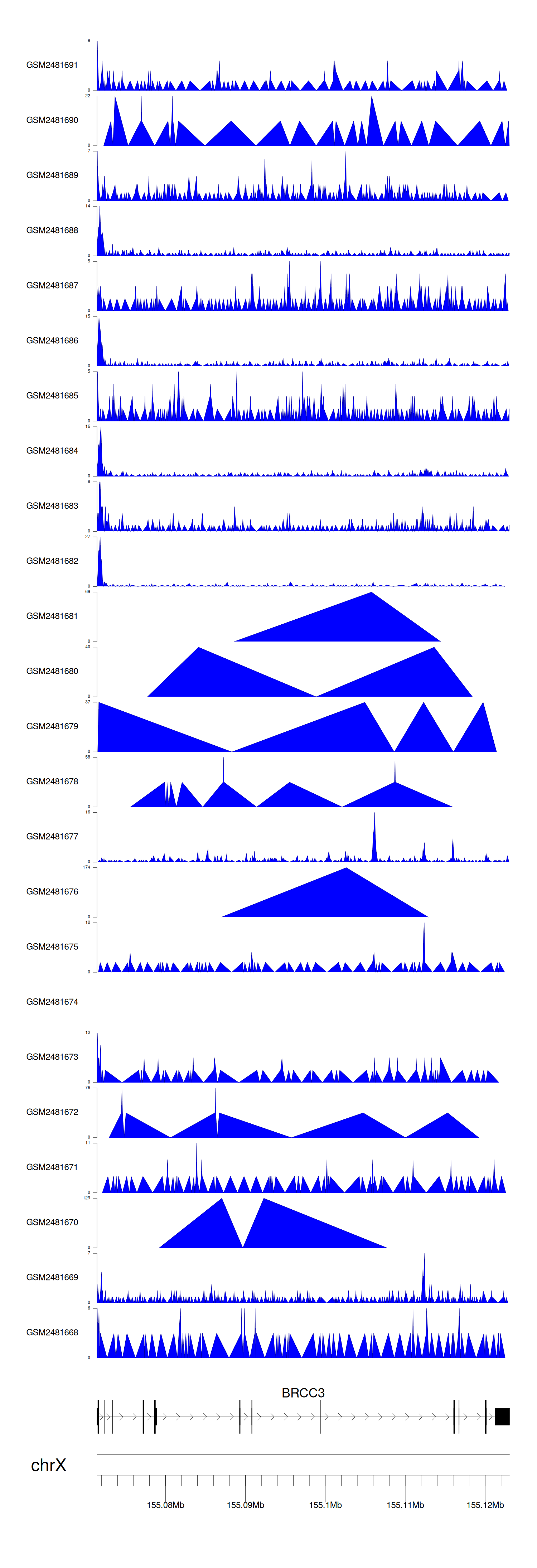 > Dataset: GSE94732 - BRCC3 peak across samples
