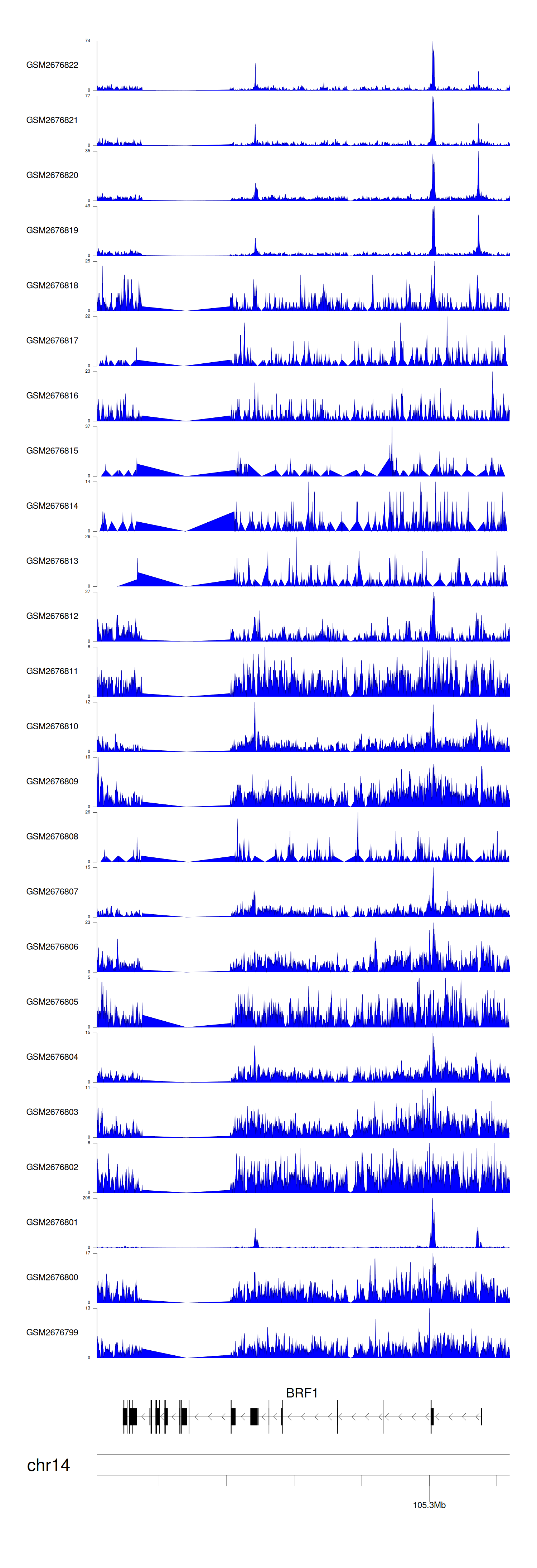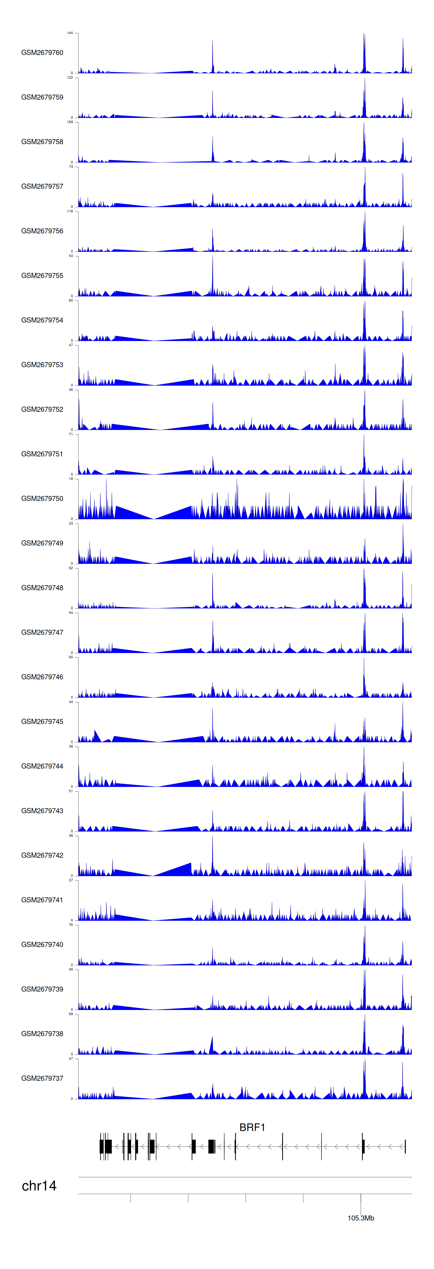 > Dataset: GSE144329 - BRF1 peak across samples