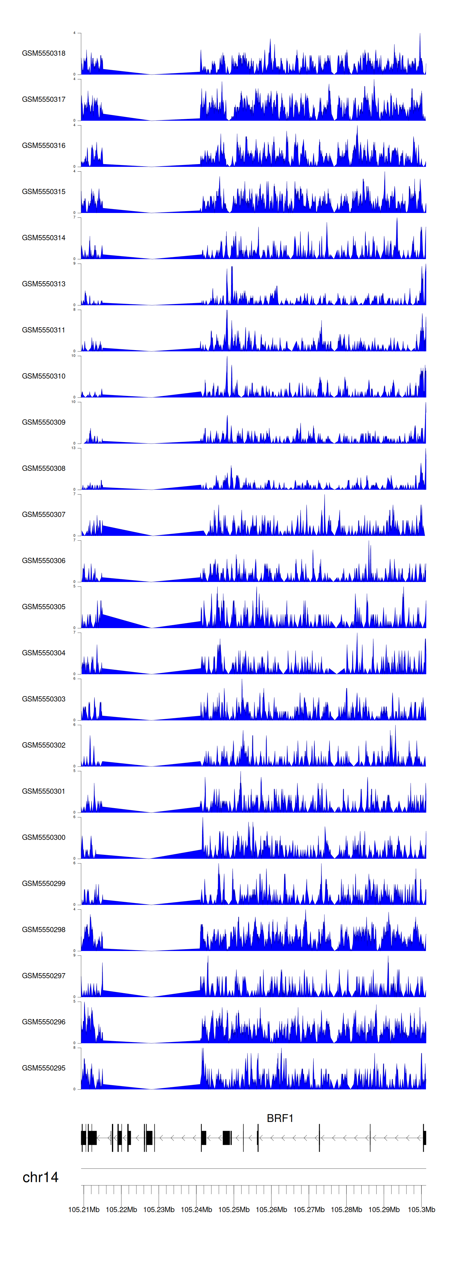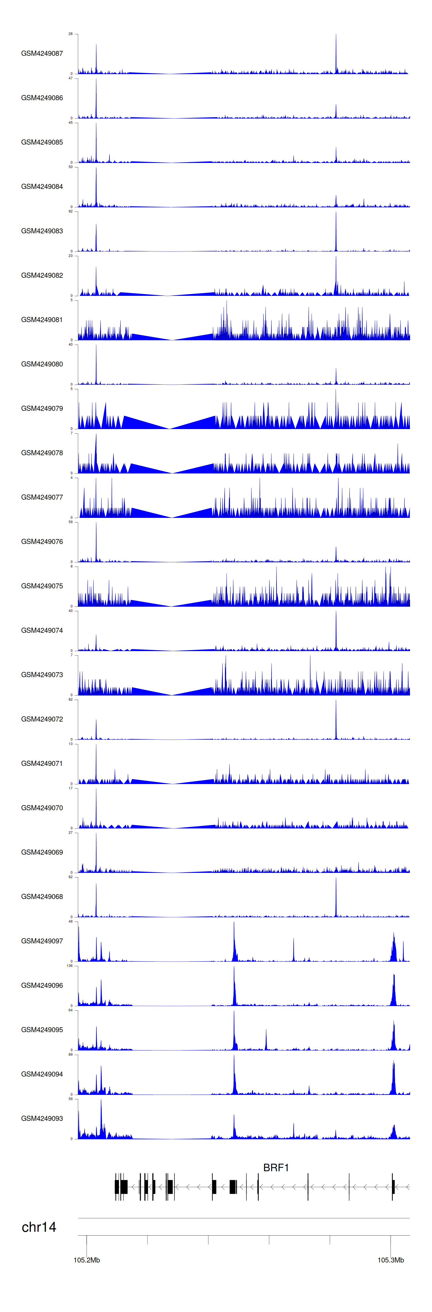 > Dataset: GSE143026 - BRF1 peak across samples
