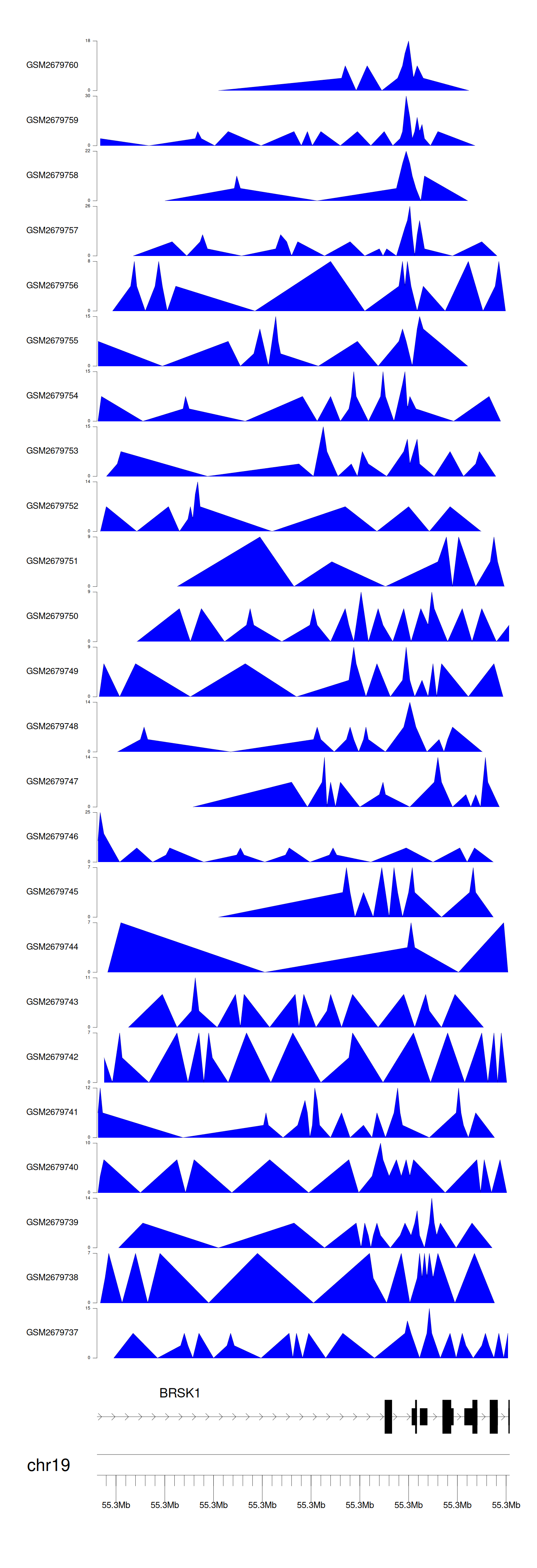 > Dataset: GSE30738 - BRSK1 peak across samples