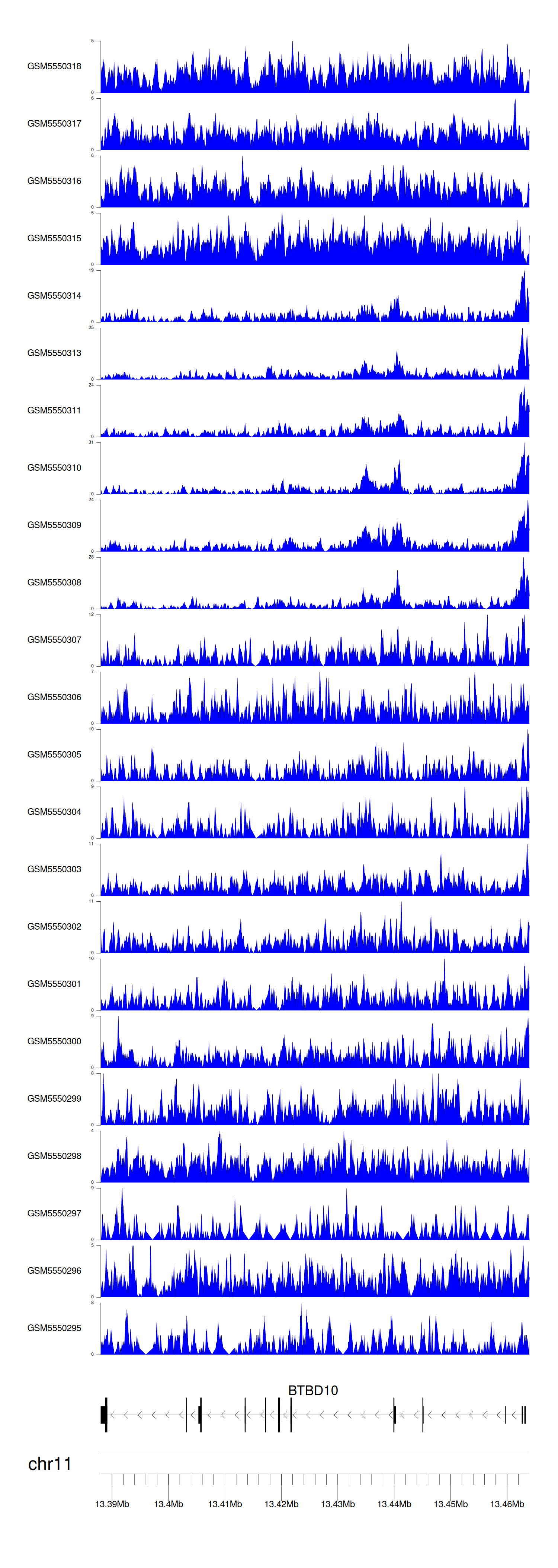 > Dataset: GSE143026 - BTBD10 peak across samples