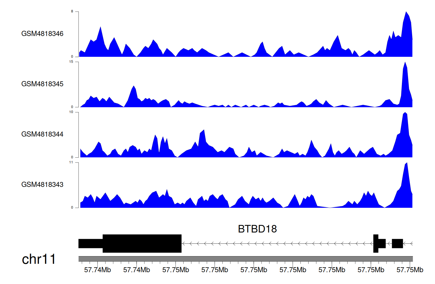 > Dataset: GSE270130 - BTBD18 peak across samples