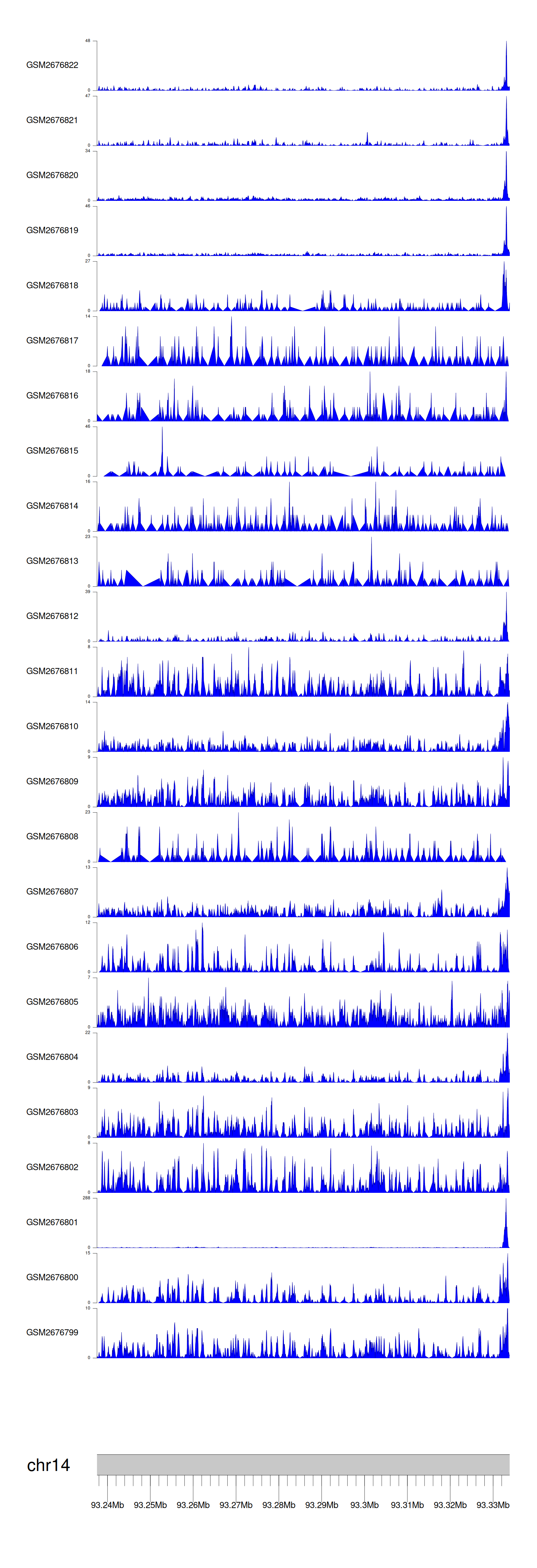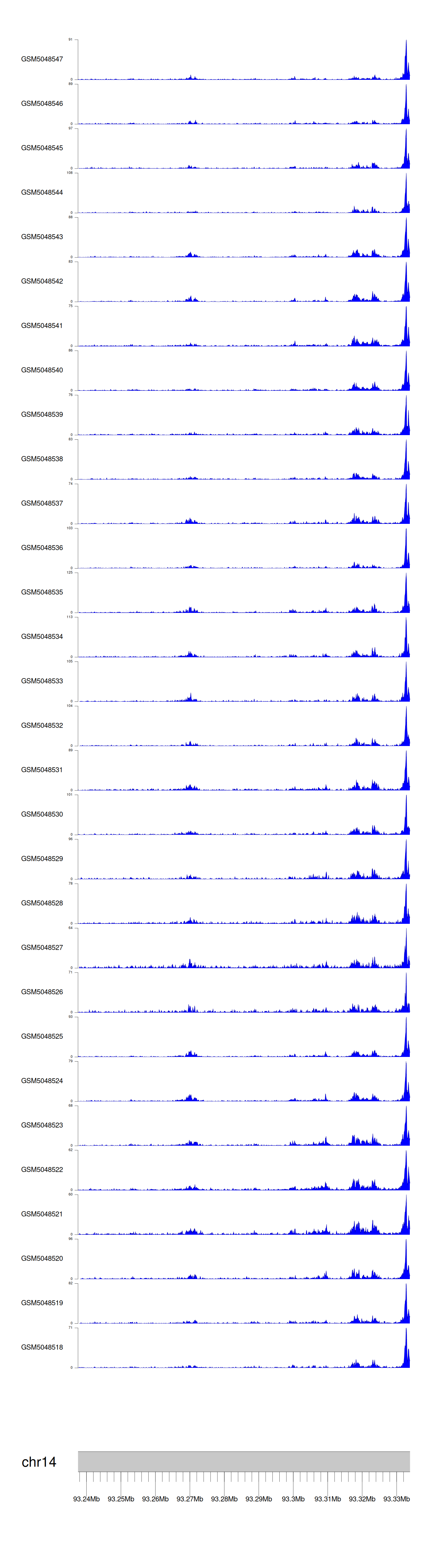 > Dataset: GSE165703 - BTBD7 peak across samples
