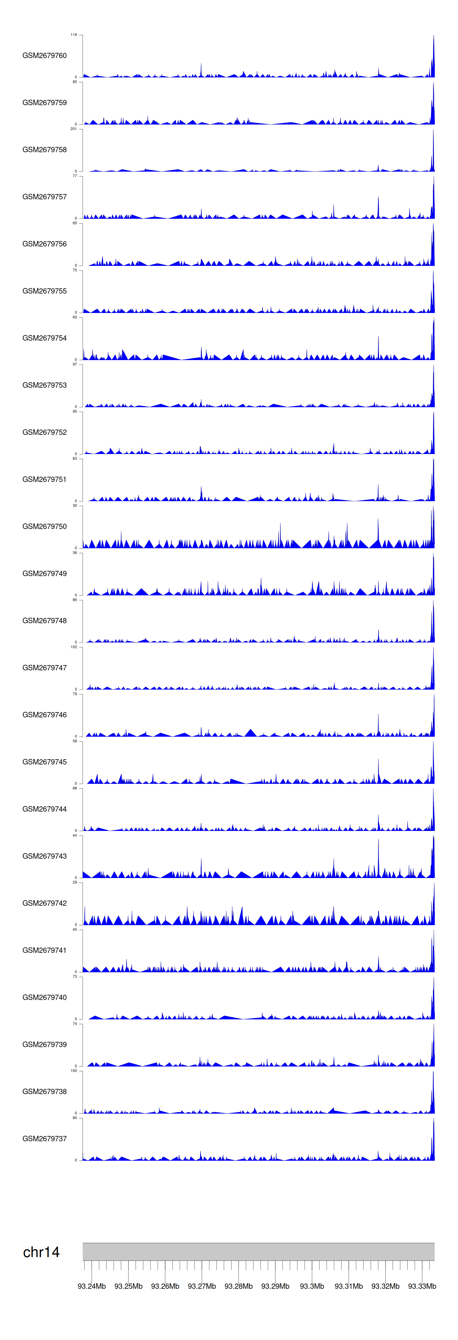 > Dataset: GSE30738 - BTBD7 peak across samples