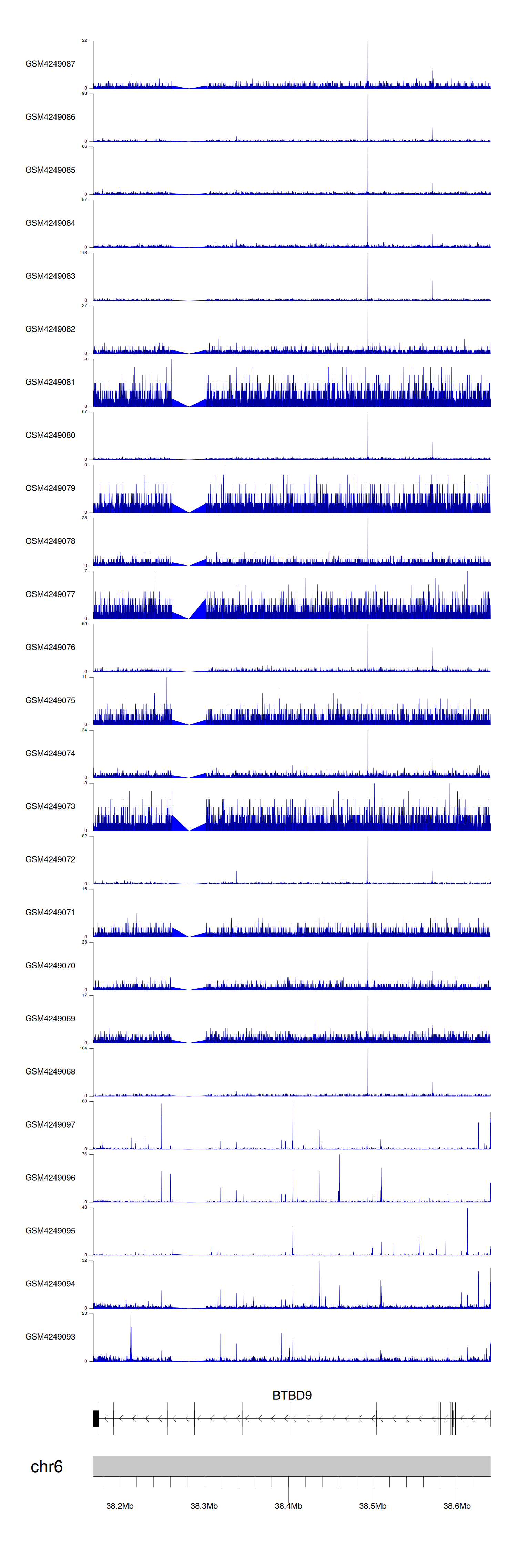 > Dataset: GSE143026 - BTBD9 peak across samples