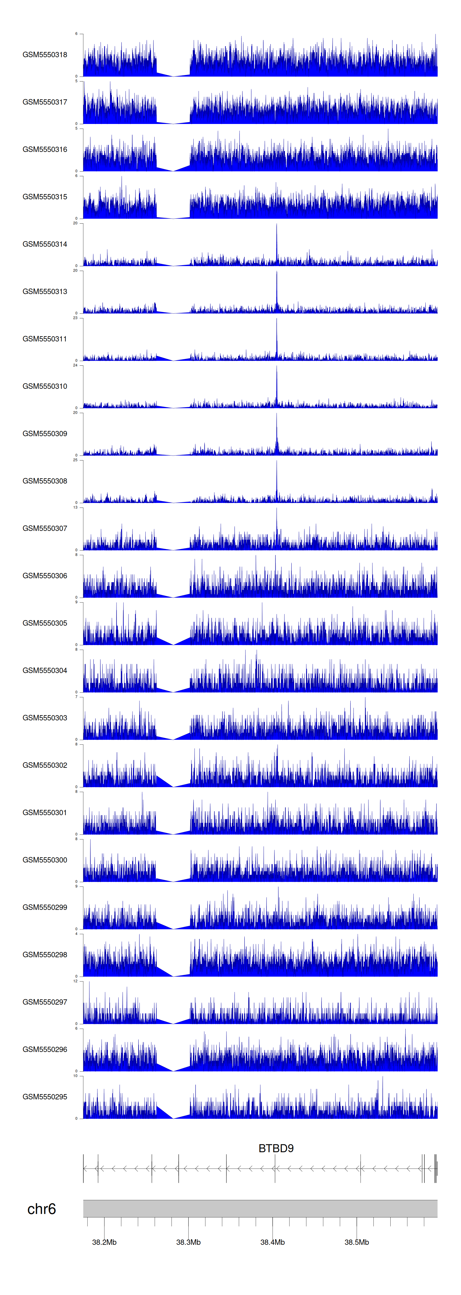 > Dataset: GSE183048 - BTBD9 peak across samples