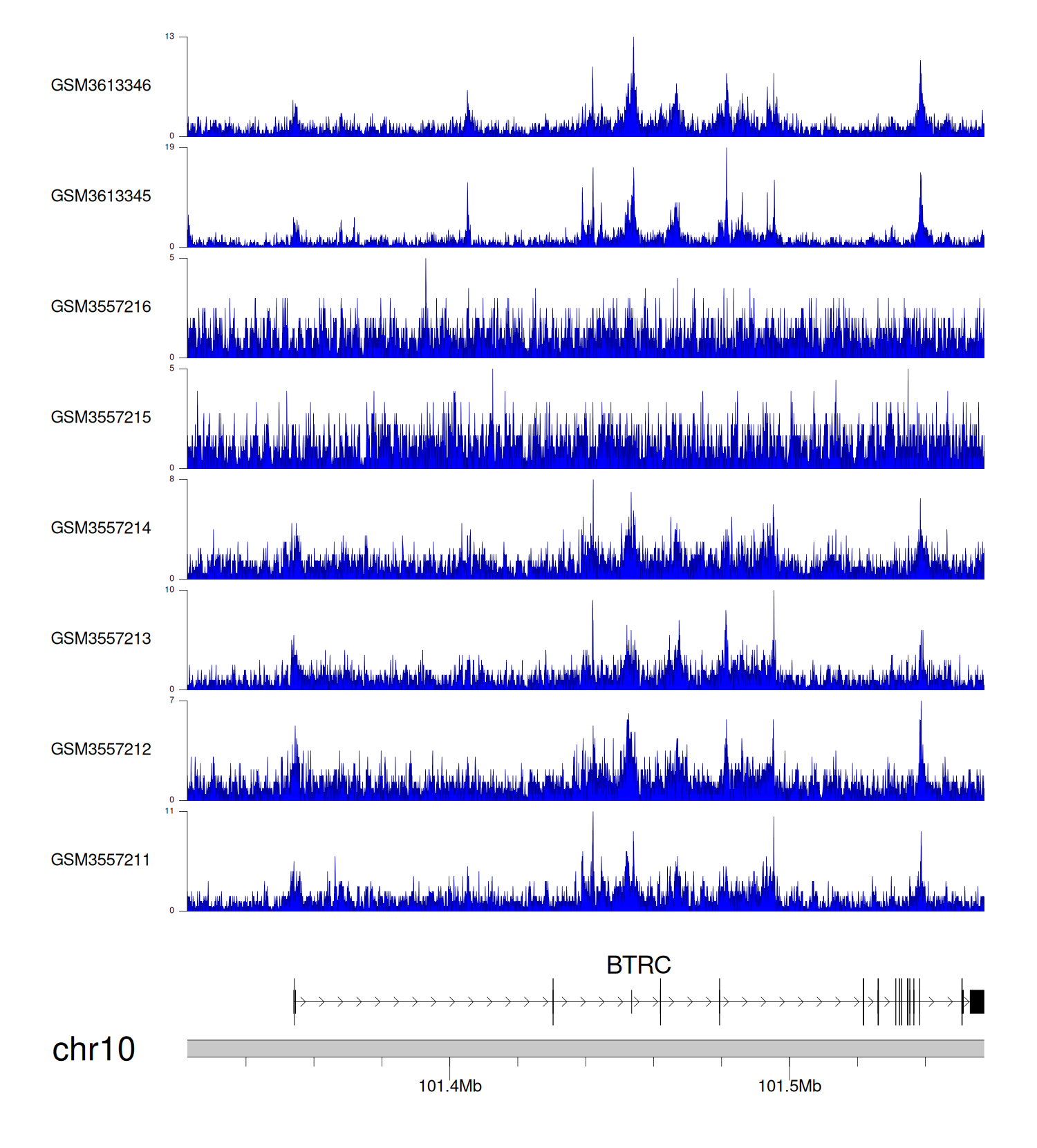 > Dataset: GSE124856 - BTRC peak across samples