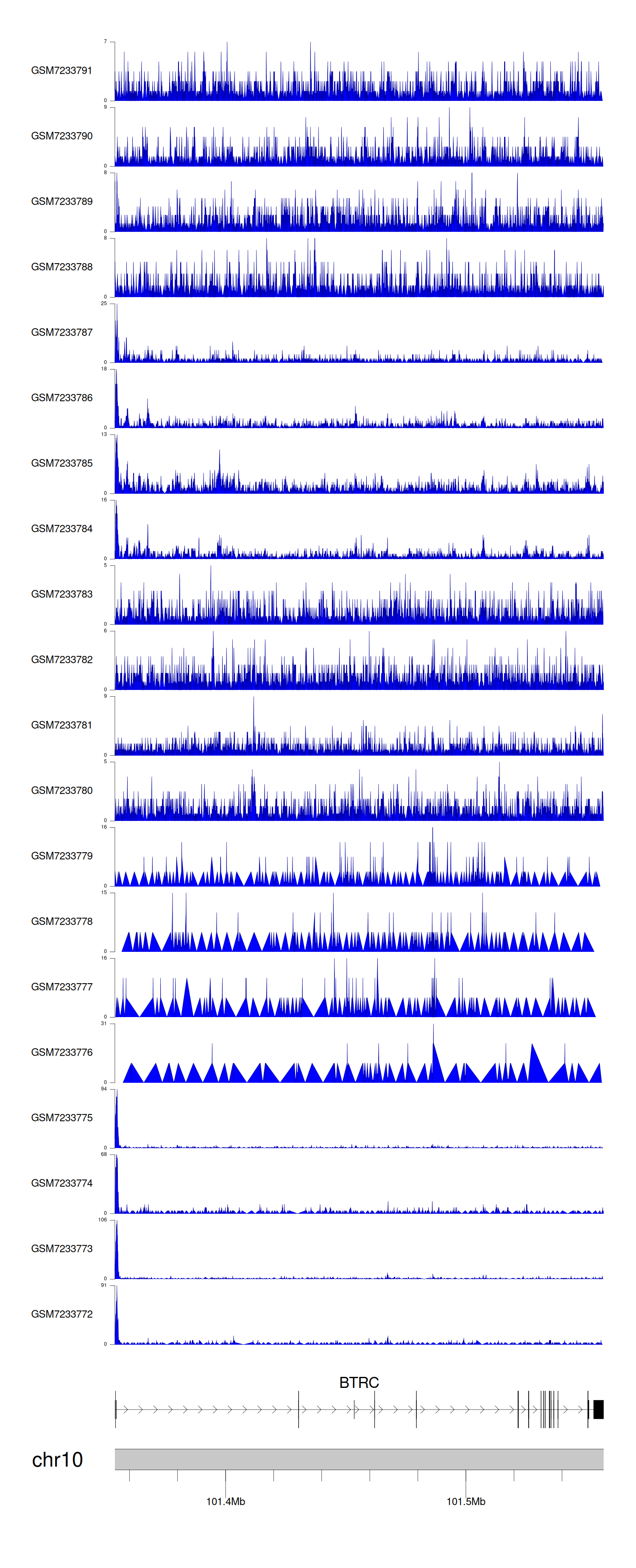 > Dataset: GSE230758 - BTRC peak across samples