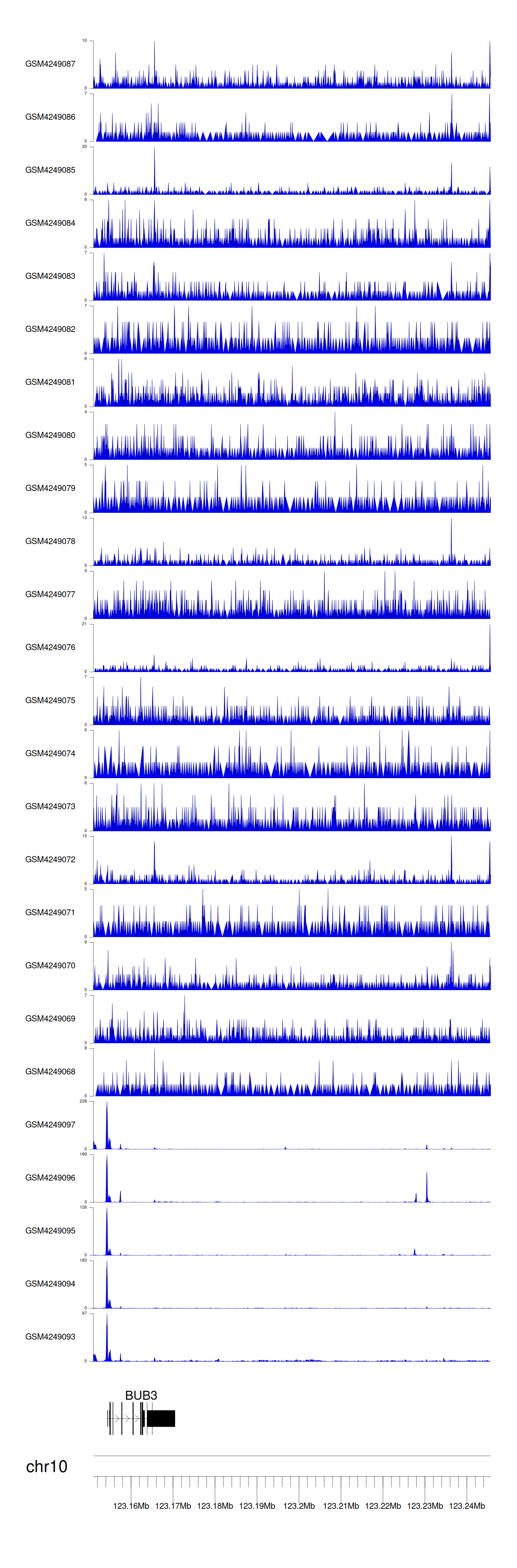 > Dataset: GSE183048 - BUB3 peak across samples