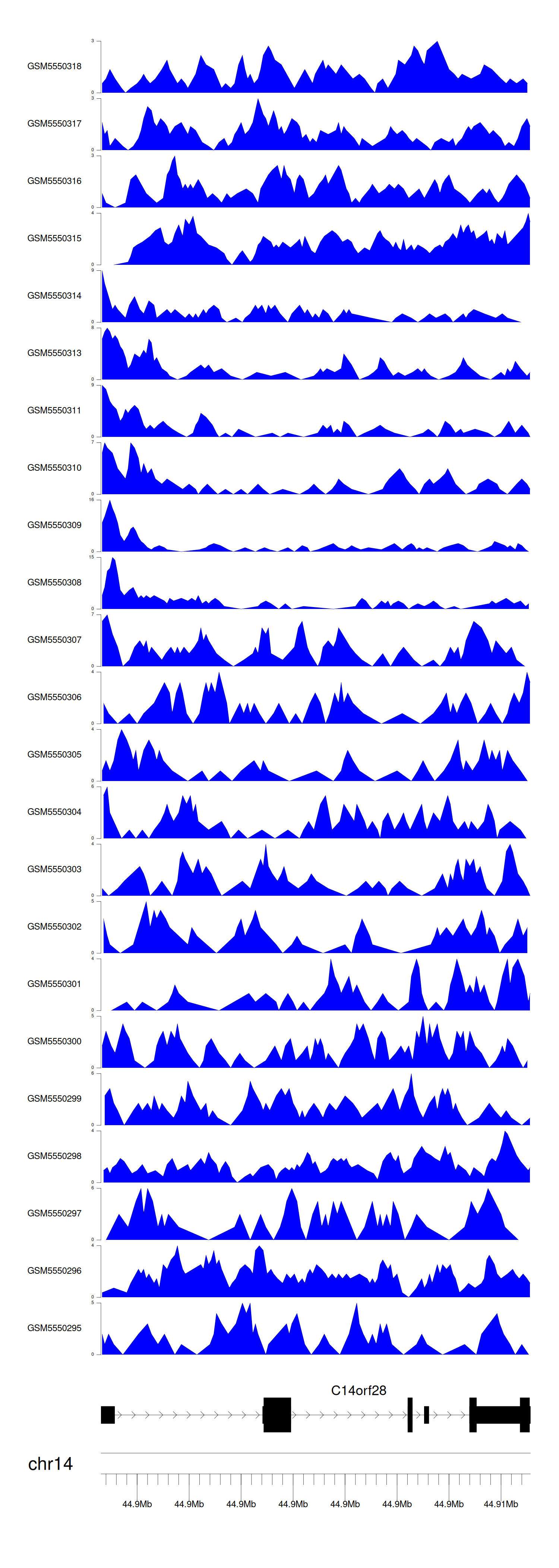 > Dataset: GSE183048 - C14orf28 peak across samples