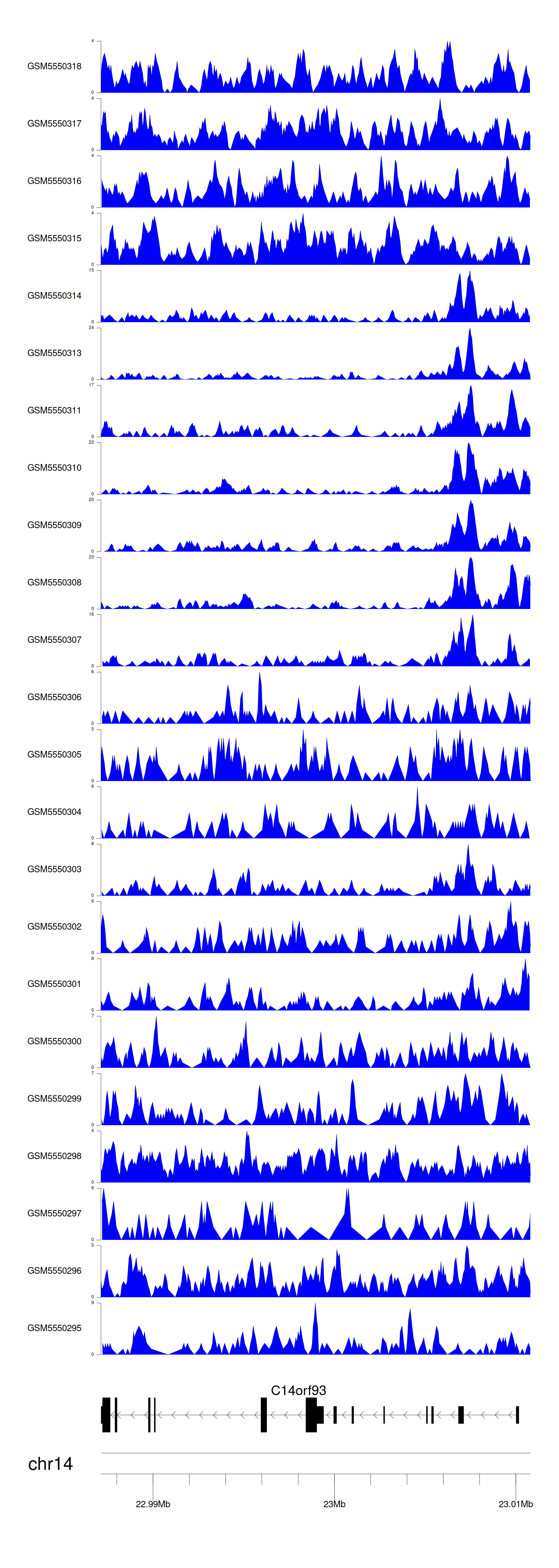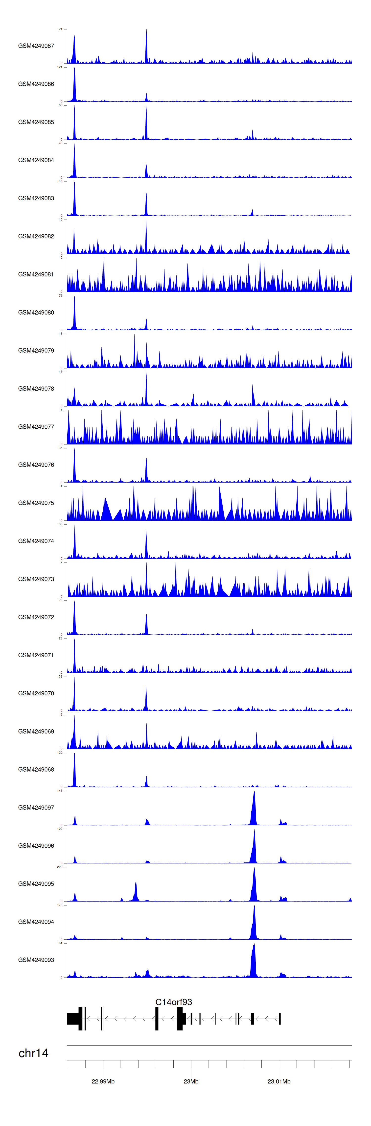 > Dataset: GSE143026 - C14orf93 peak across samples