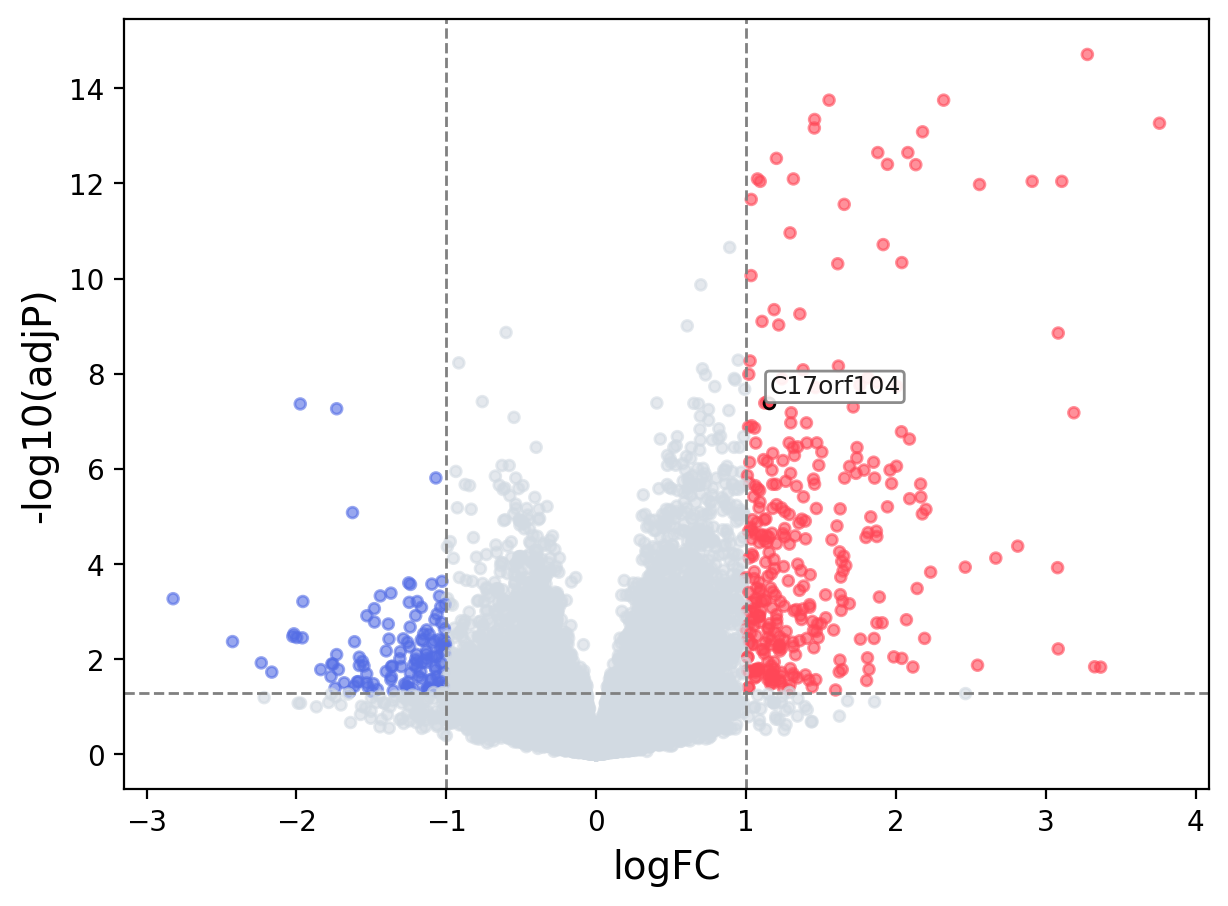 When the query gene is differentially changed in the dataset, a volcano/bar plot will be displayed.