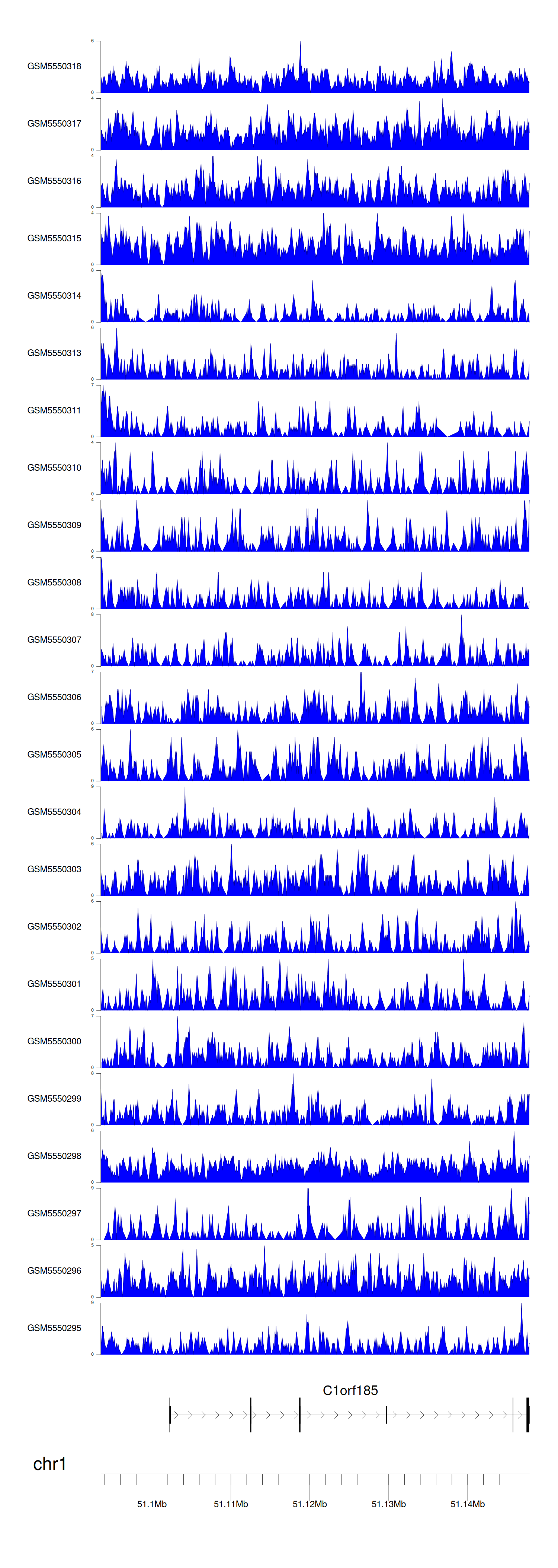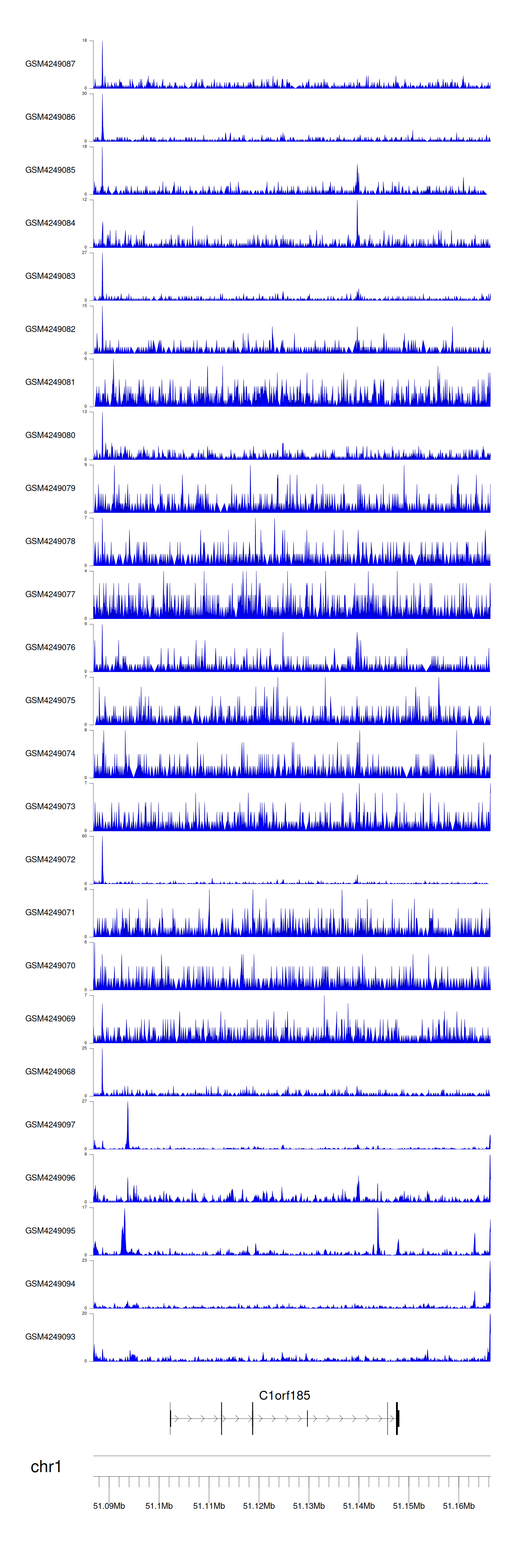 > Dataset: GSE143026 - C1orf185 peak across samples