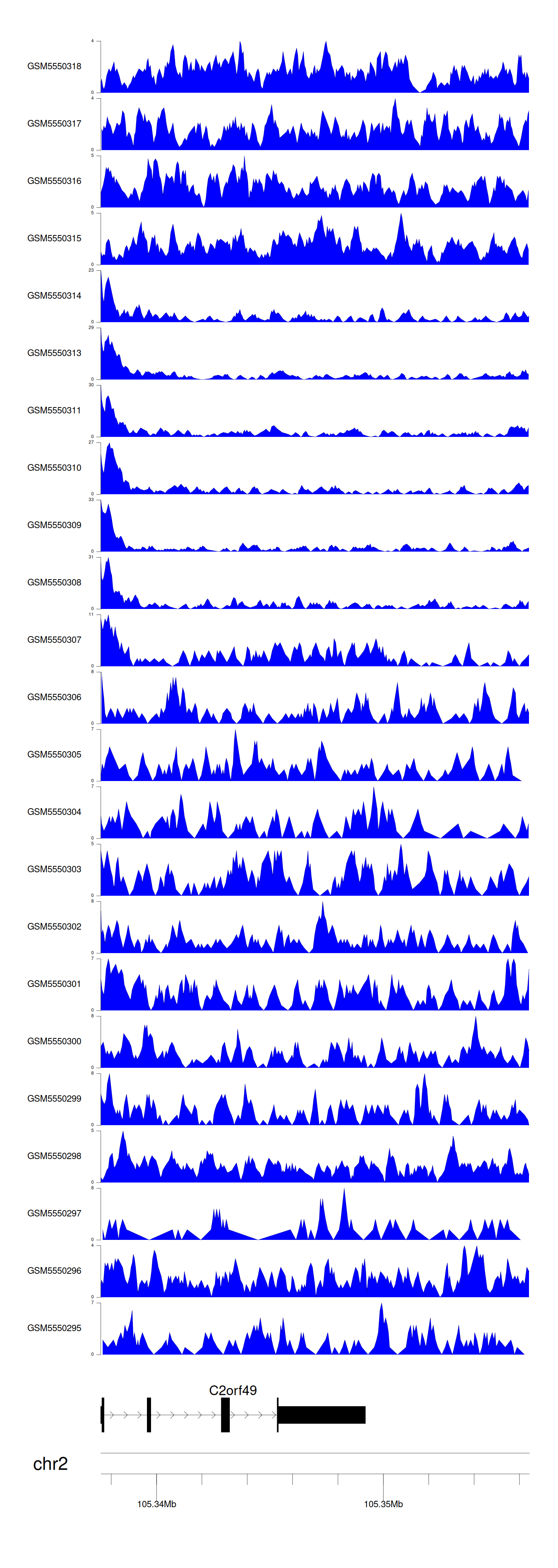 > Dataset: GSE143026 - C2orf49 peak across samples