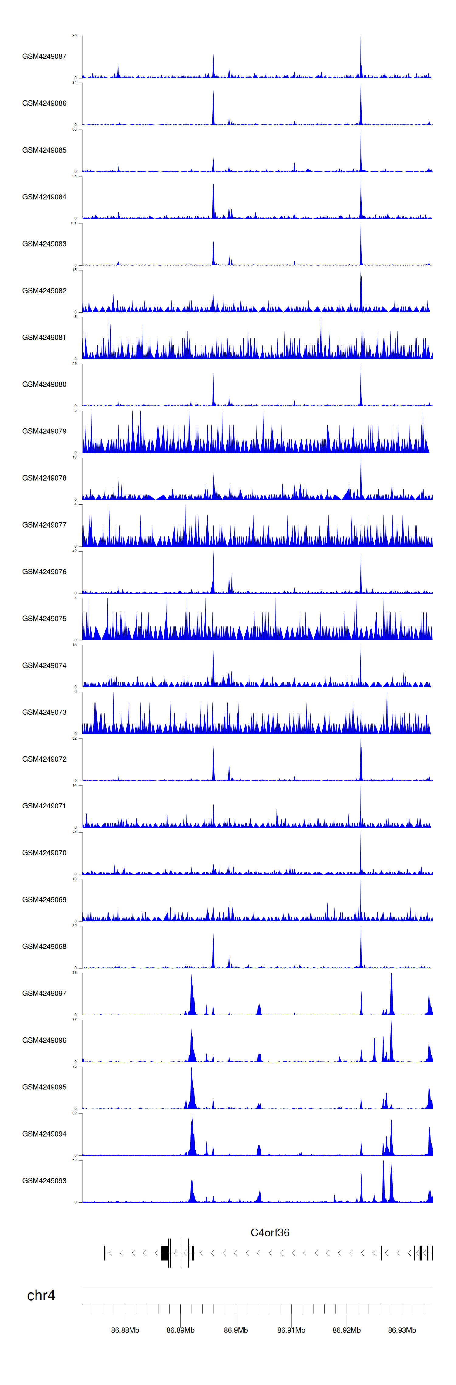 > Dataset: GSE143026 - C4orf36 peak across samples