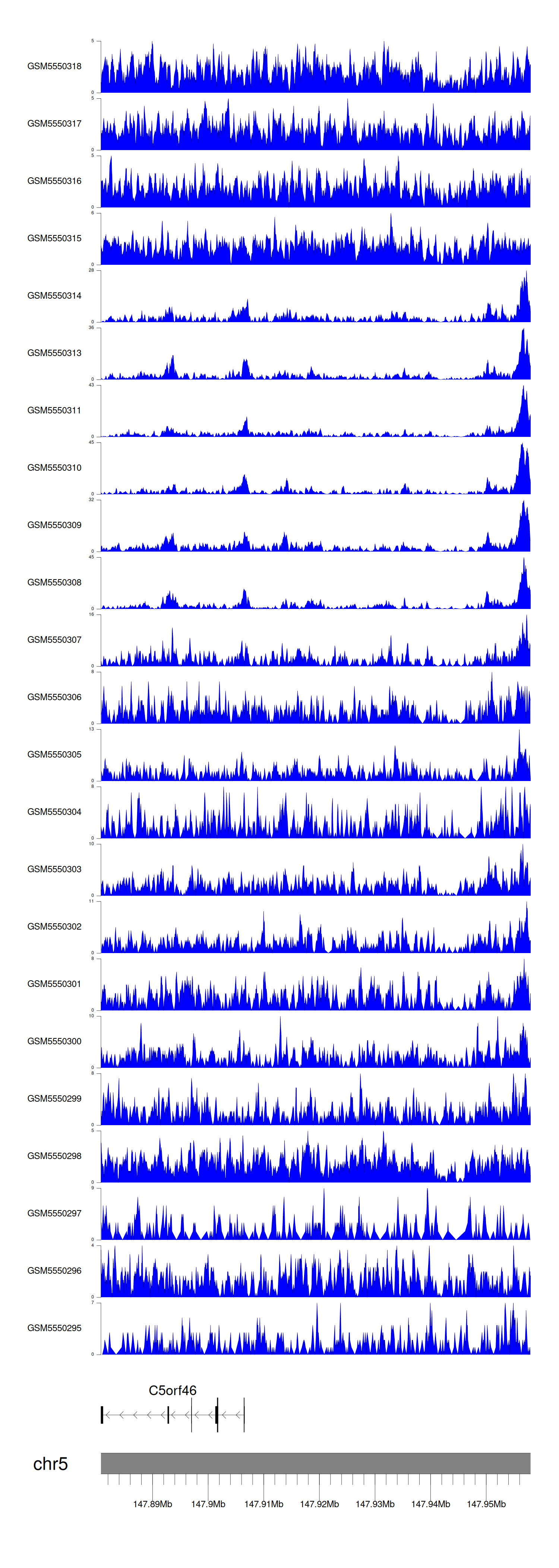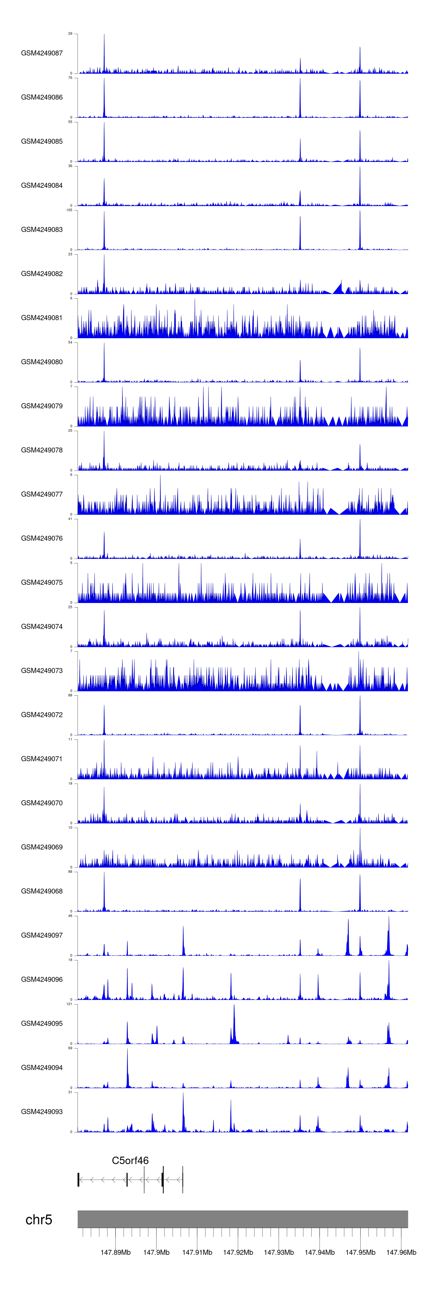 > Dataset: GSE143026 - C5orf46 peak across samples