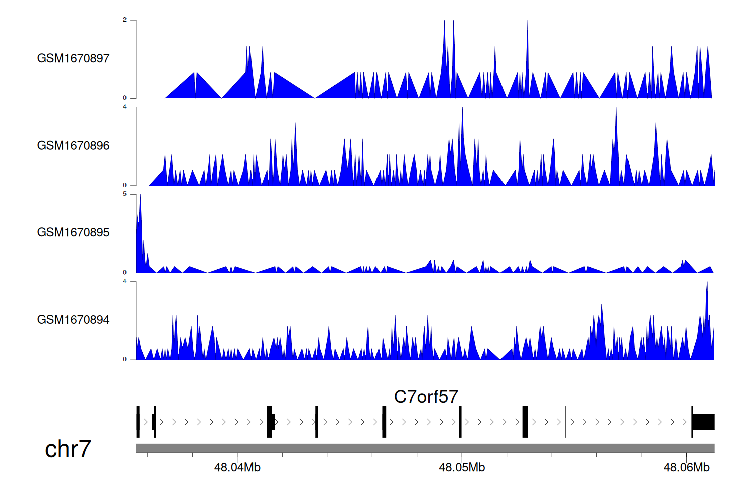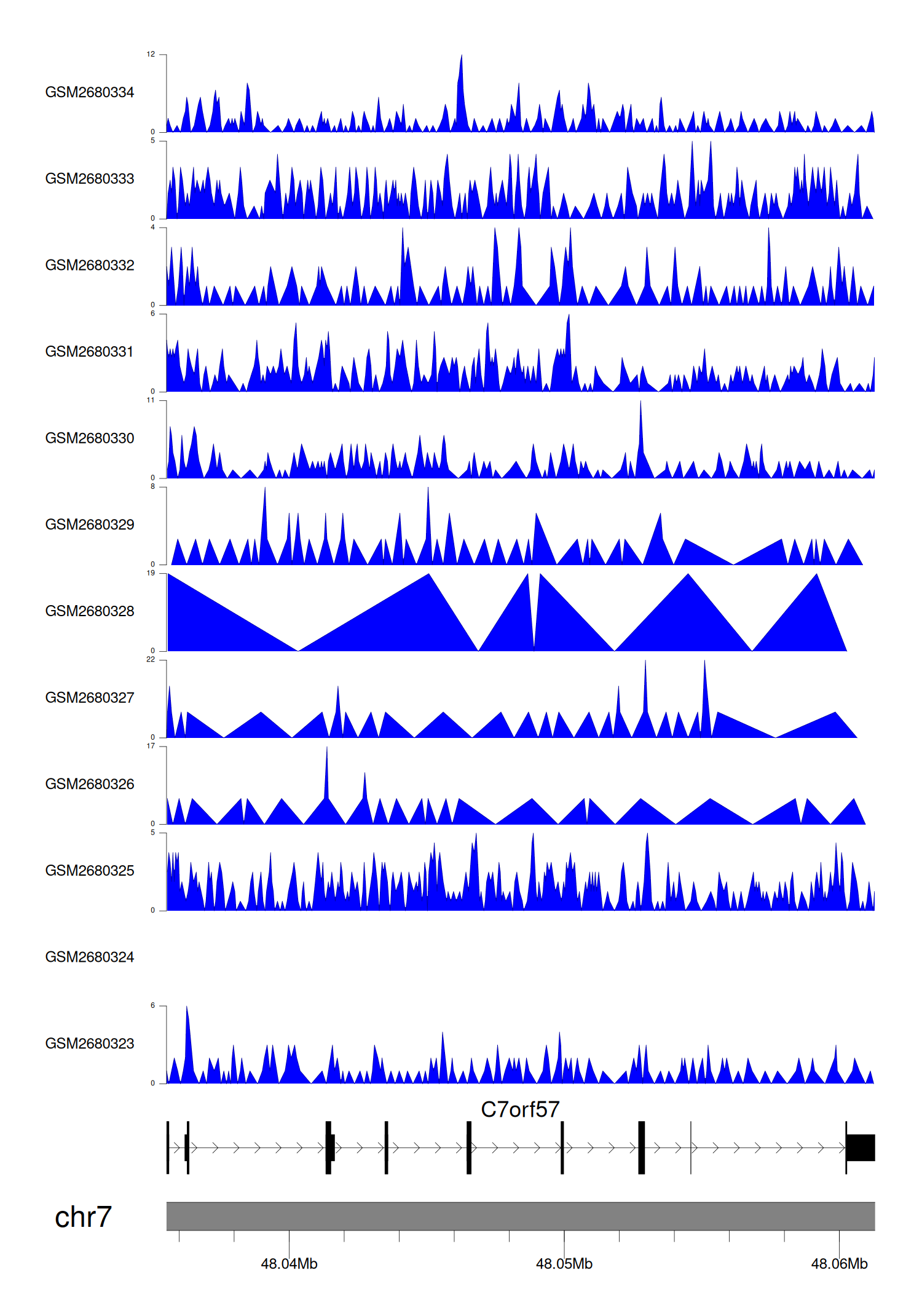 > Dataset: GSE100400 - C7orf57 peak across samples