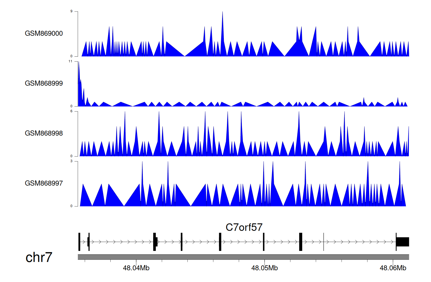 > Dataset: GSE131257 - C7orf57 peak across samples