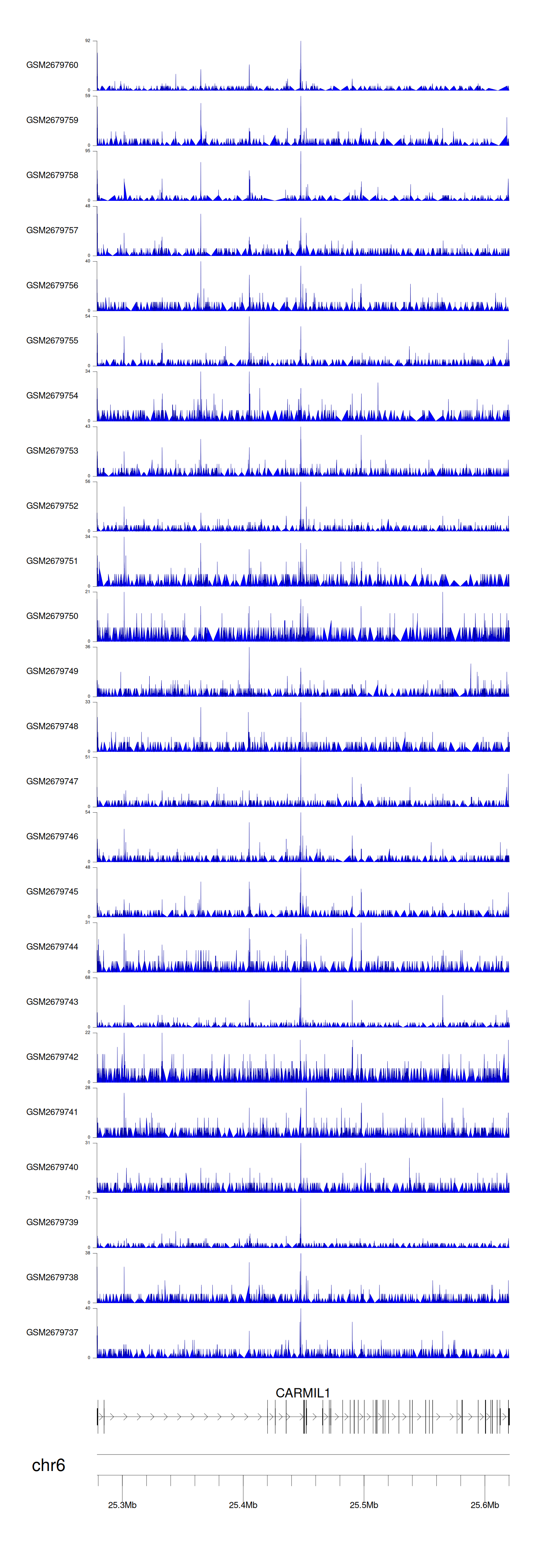 > Dataset: GSE100376 - CARMIL1 peak across samples