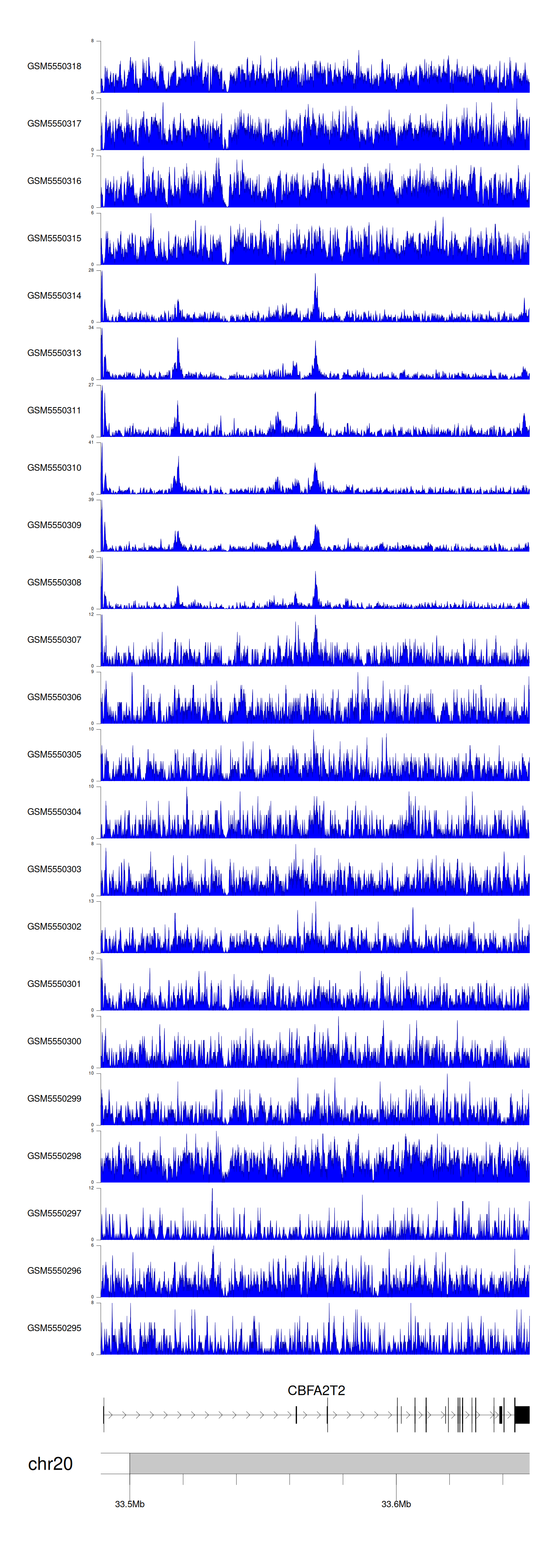> Dataset: GSE143026 - CBFA2T2 peak across samples