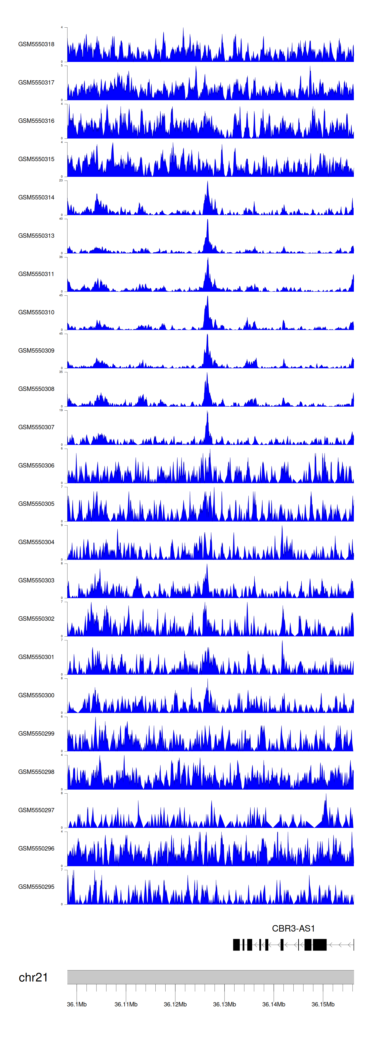 > Dataset: GSE143026 - CBR3-AS1 peak across samples