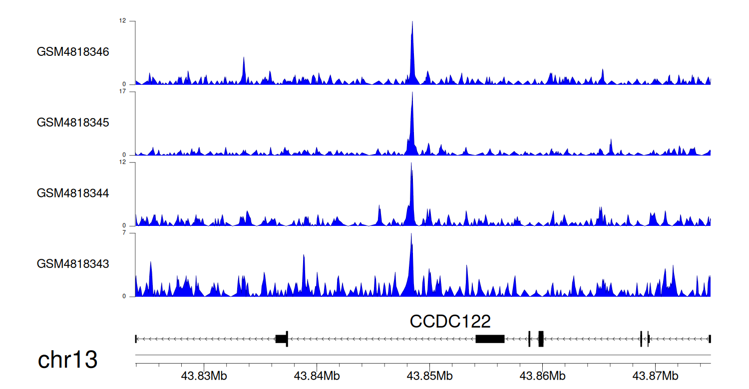 > Dataset: GSE131257 - CCDC122 peak across samples