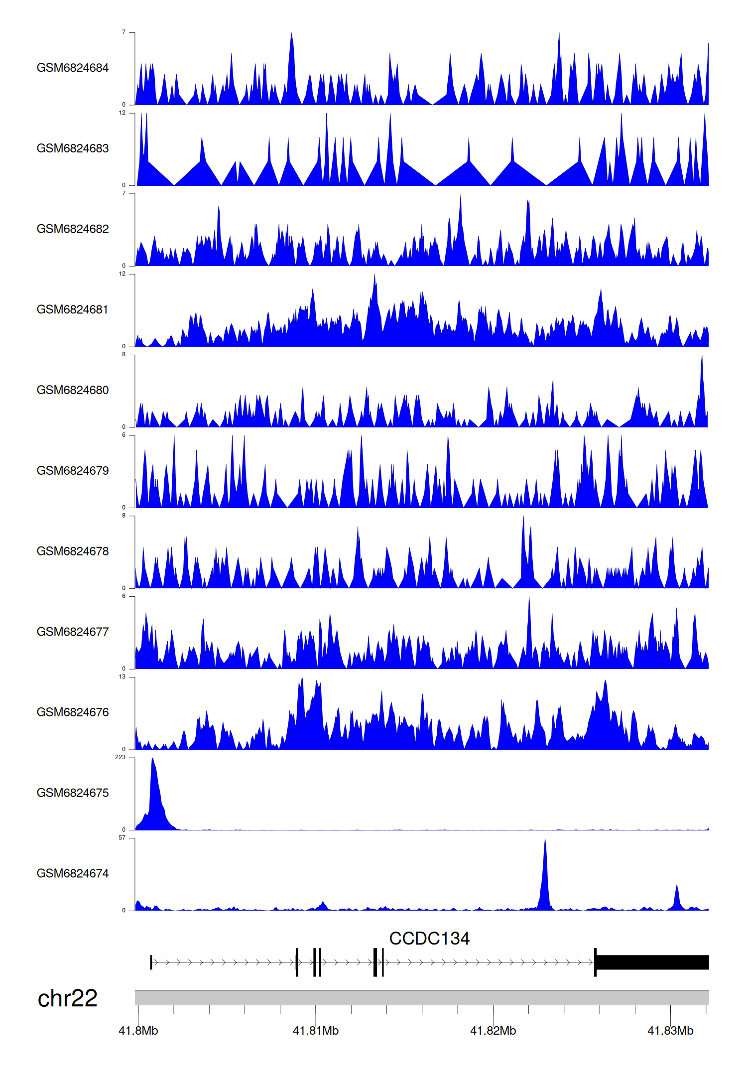 > Dataset: GSE144329 - CCDC134 peak across samples