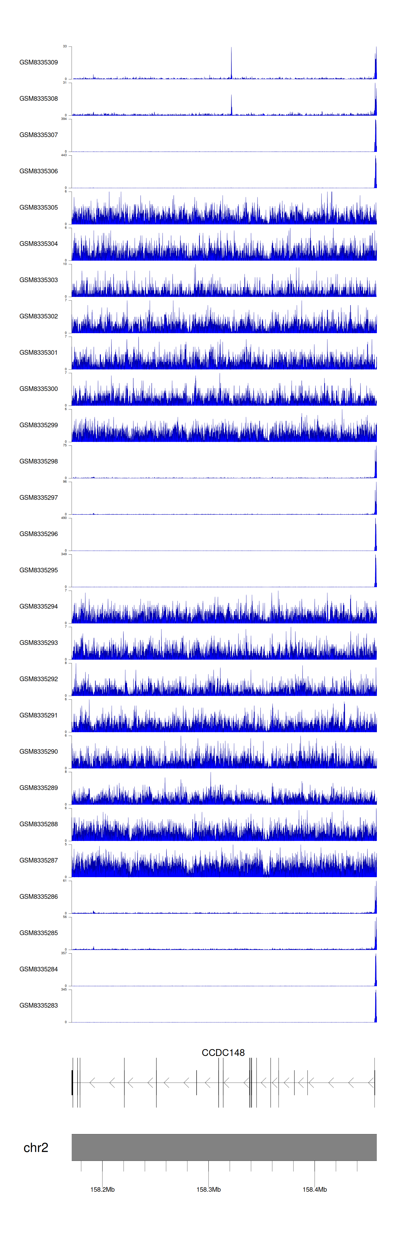 > Dataset: GSE270130 - CCDC148 peak across samples