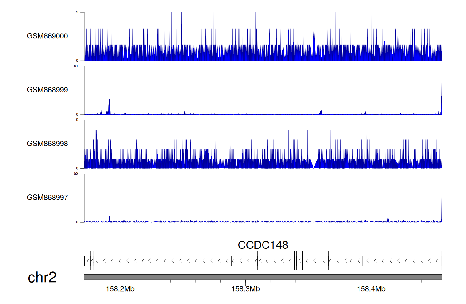 > Dataset: GSE68402 - CCDC148 peak across samples