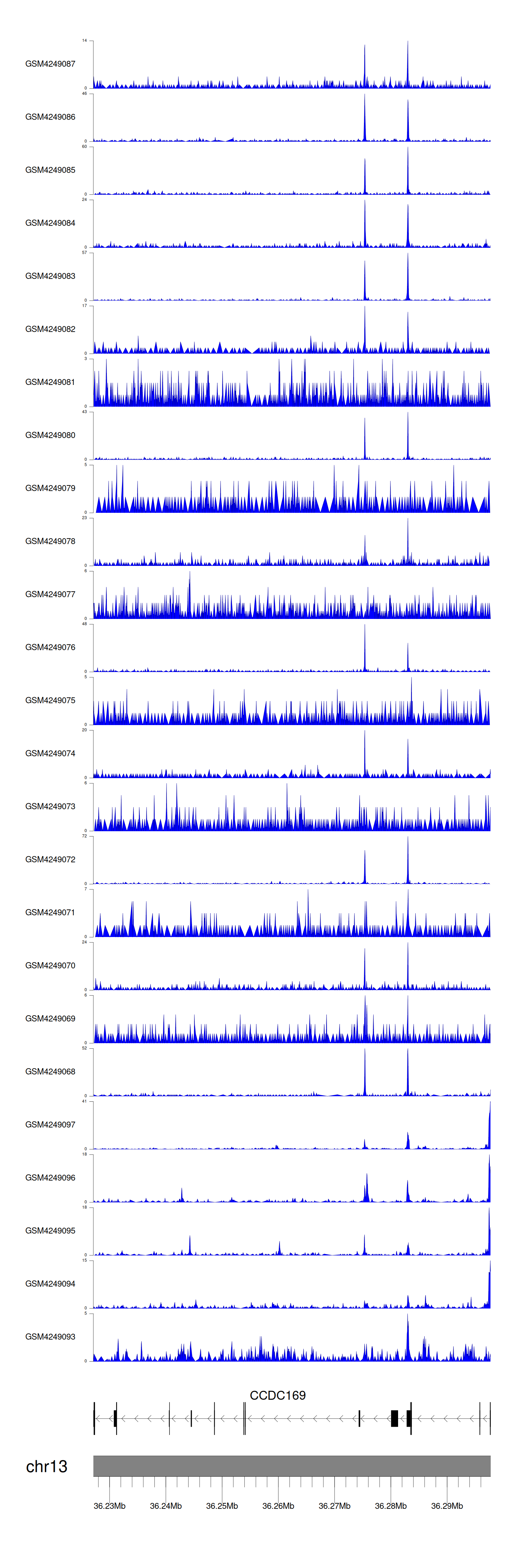 > Dataset: GSE143026 - CCDC169 peak across samples