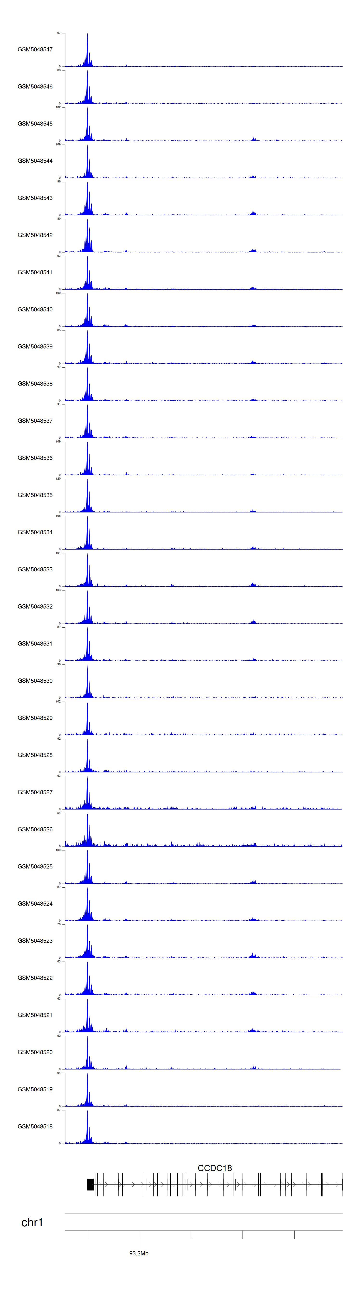 > Dataset: GSE211651 - CCDC18 peak across samples