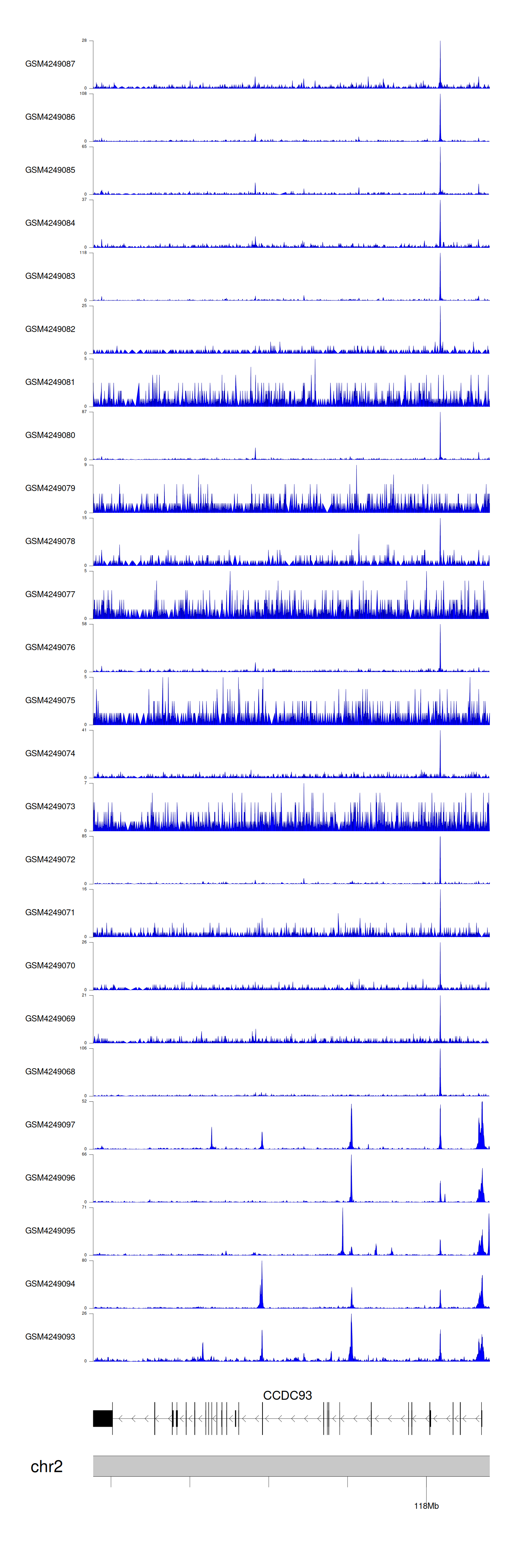 > Dataset: GSE143026 - CCDC93 peak across samples