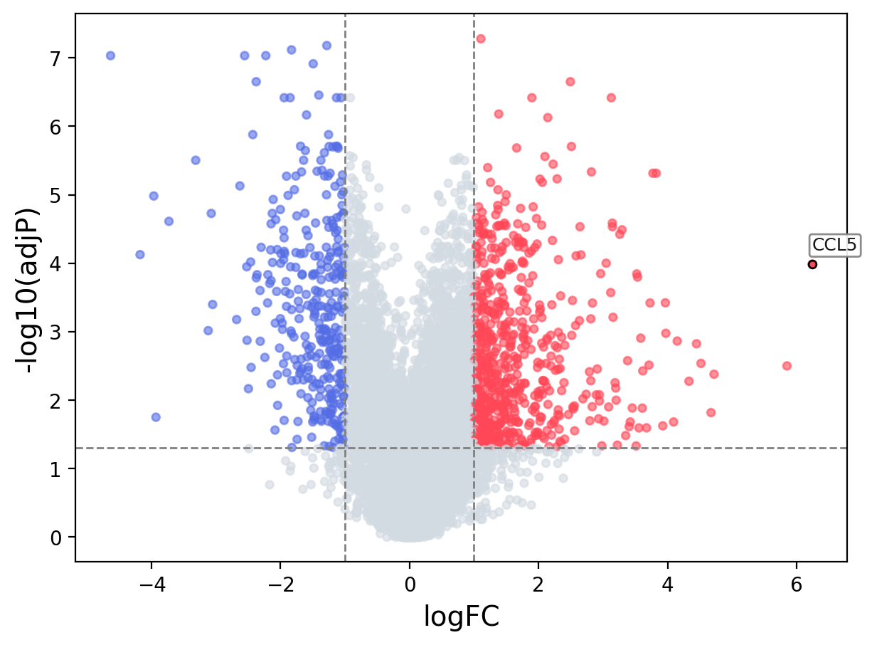 When the query gene is differentially changed in the dataset, a volcano/bar plot will be displayed.