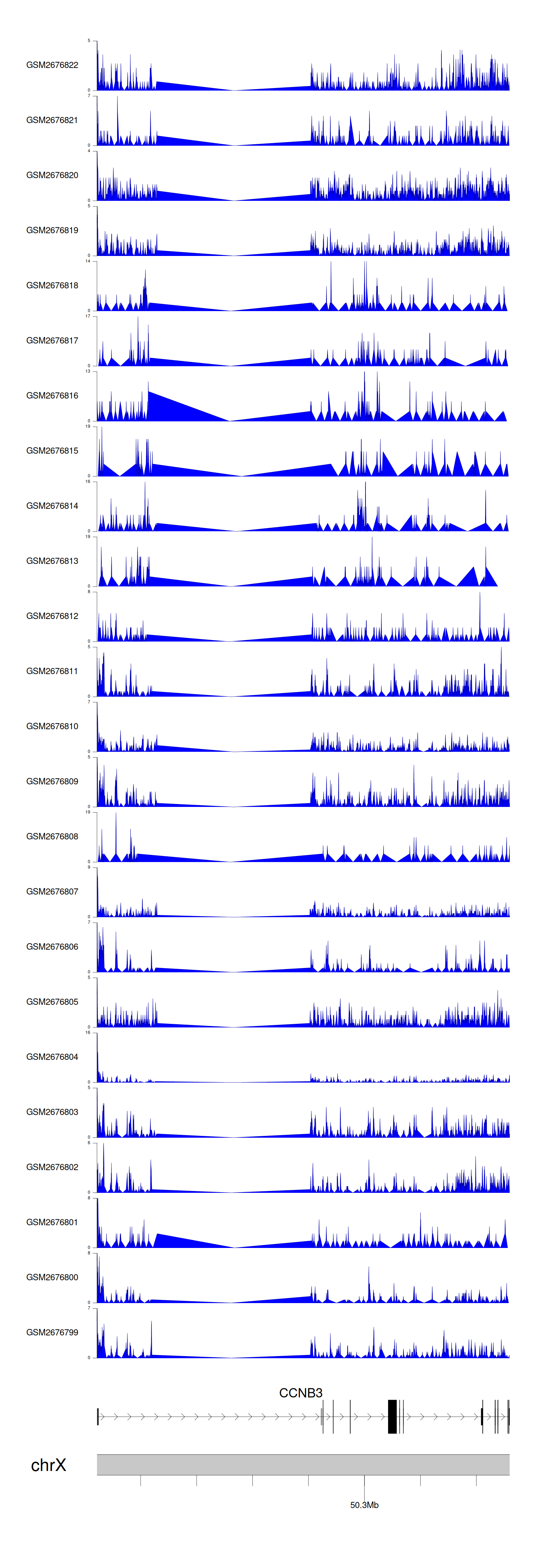 > Dataset: GSE100376 - CCNB3 peak across samples