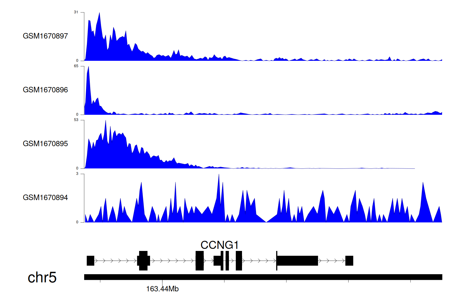 > Dataset: GSE68402 - CCNG1 peak across samples