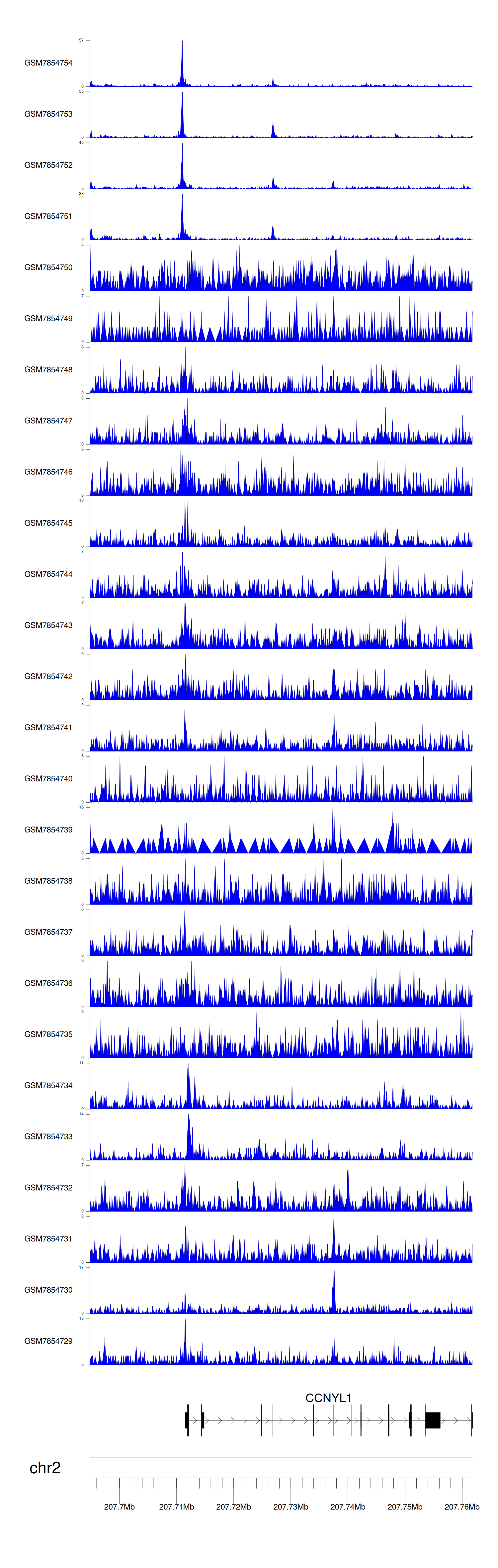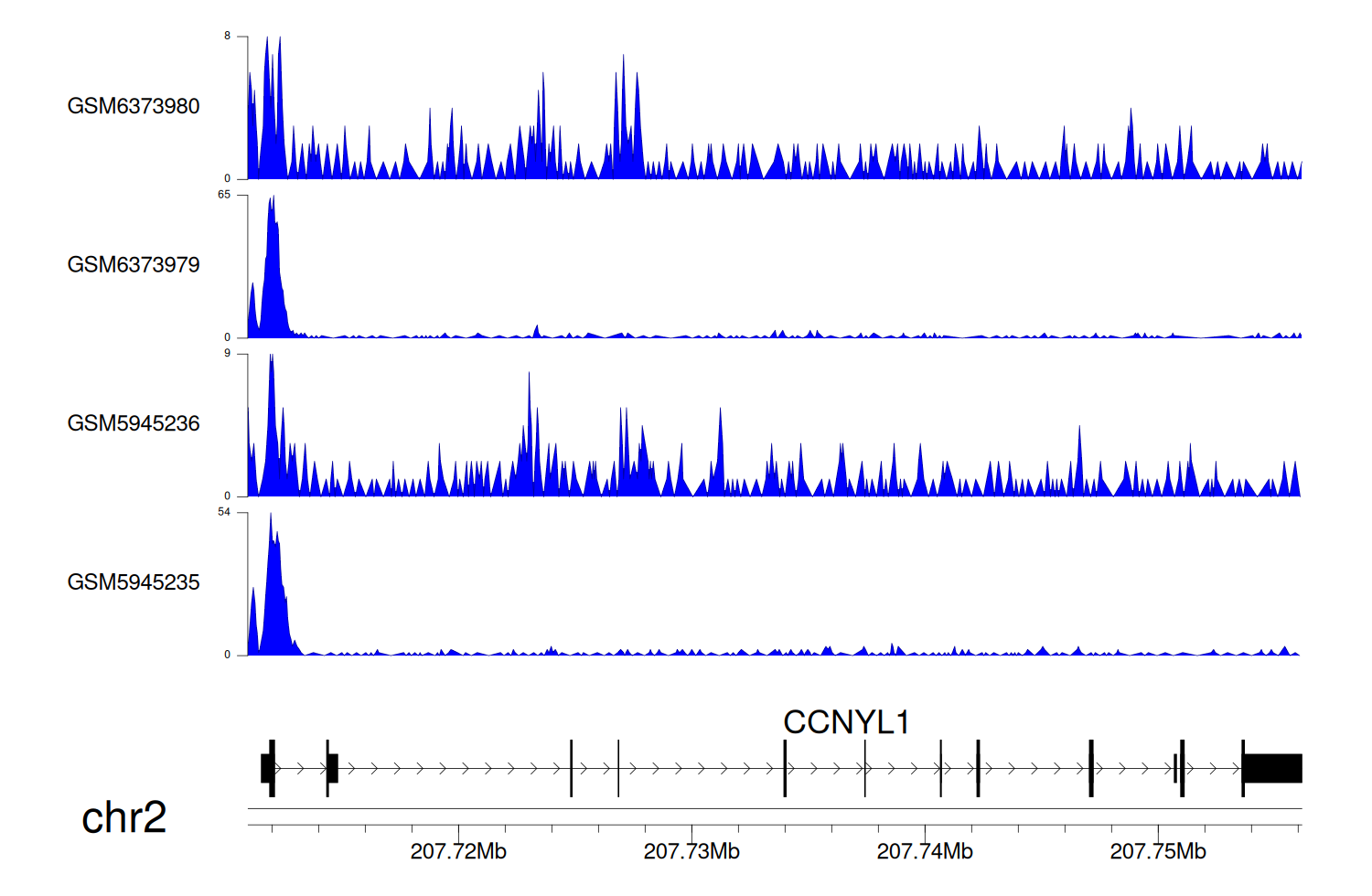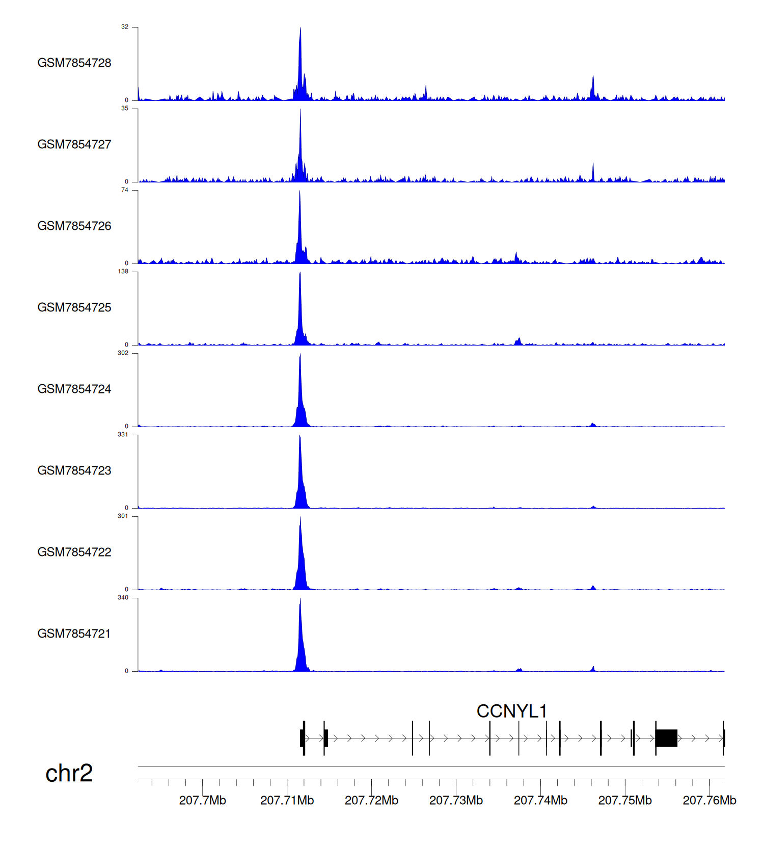 > Dataset: GSE198334 - CCNYL1 peak across samples