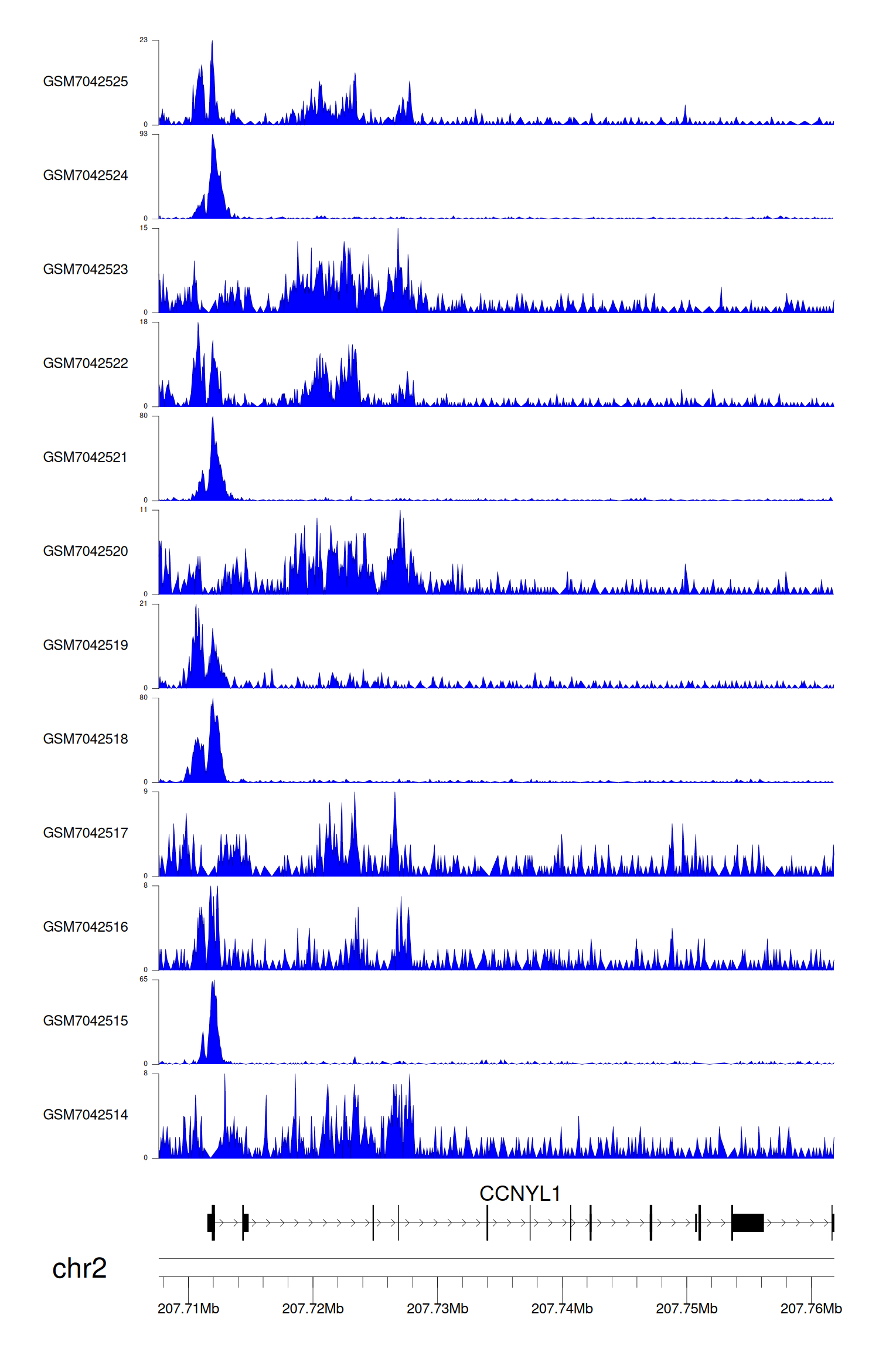 > Dataset: GSE225248 - CCNYL1 peak across samples