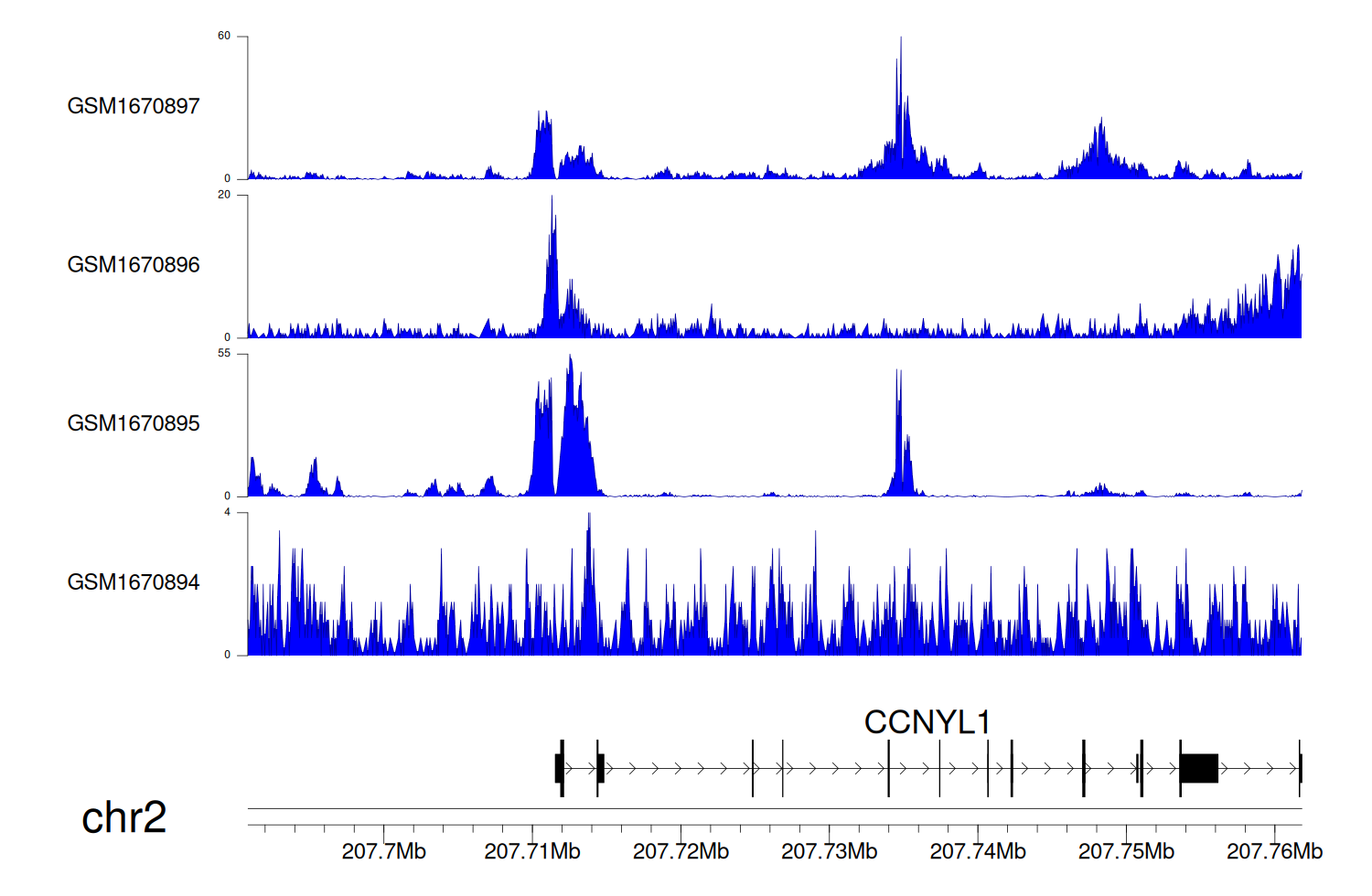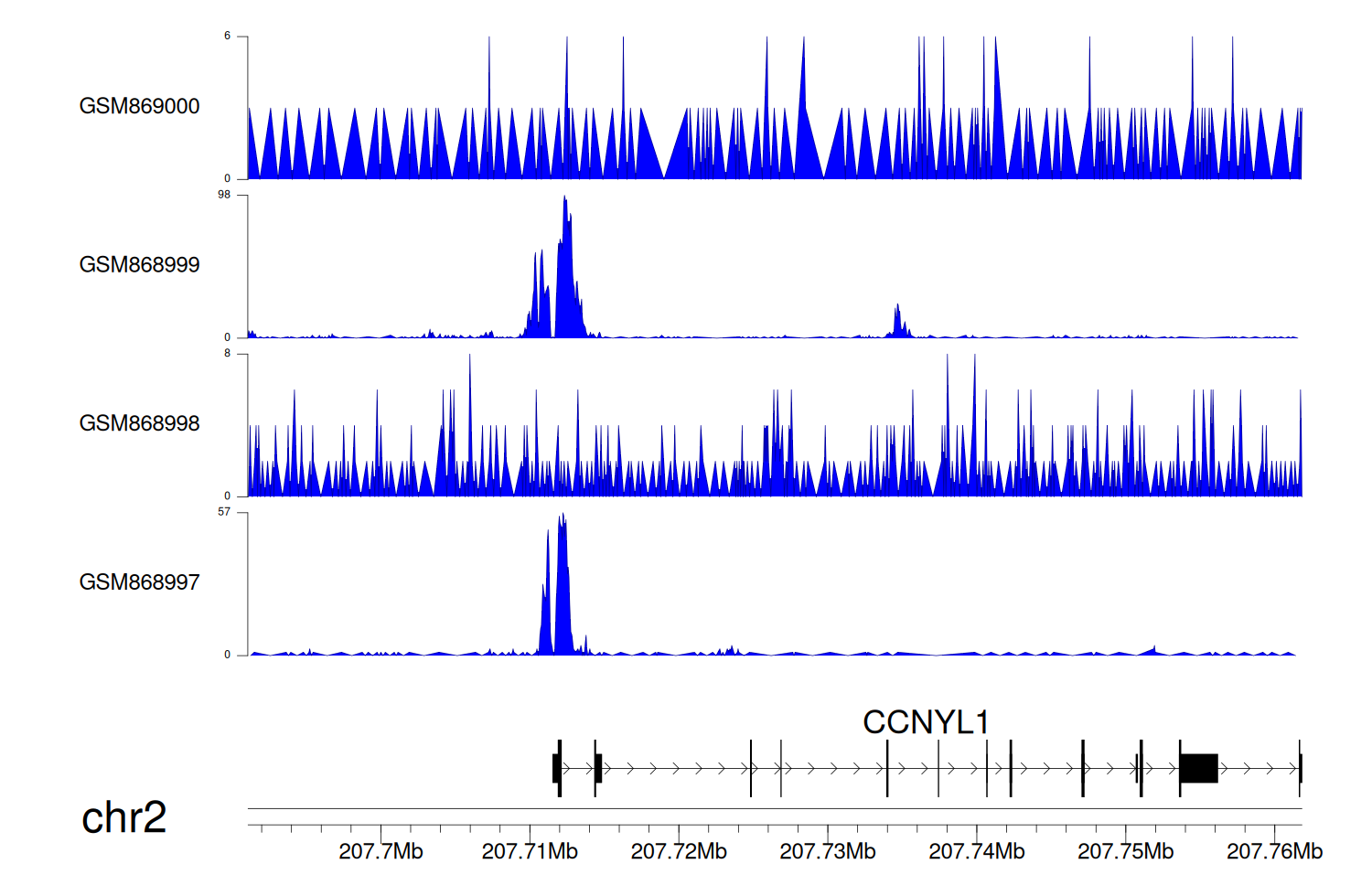 > Dataset: GSE68402 - CCNYL1 peak across samples