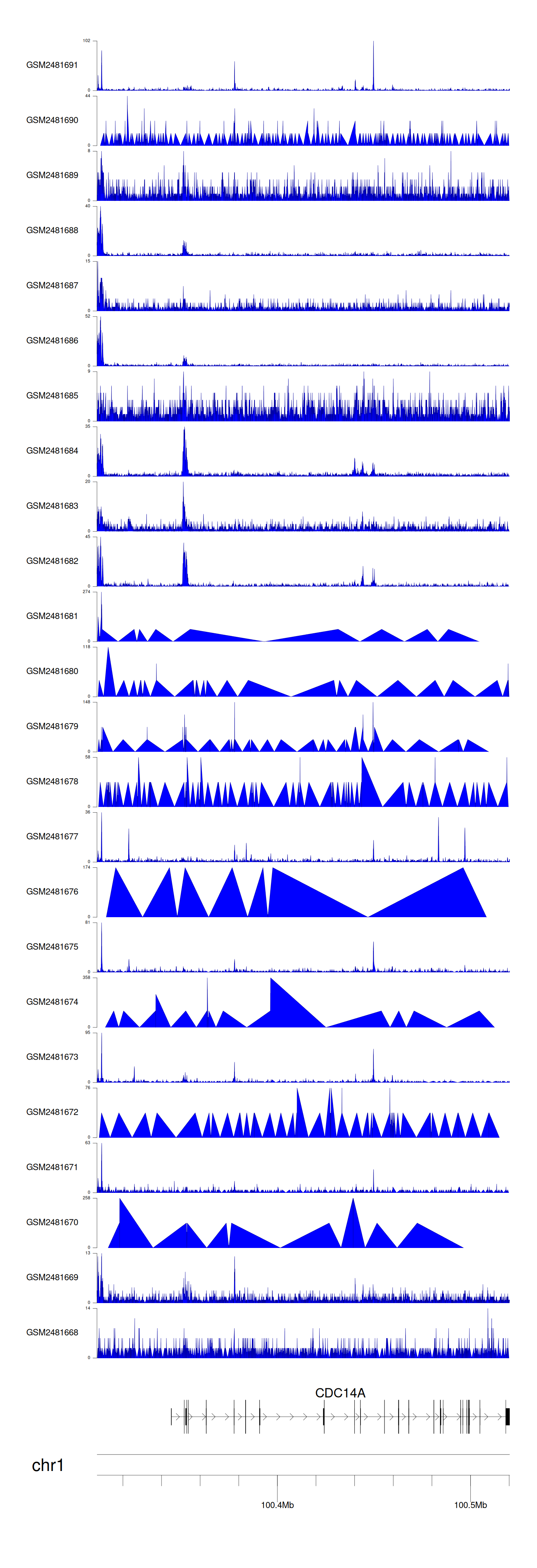 The protein encoded by this gene is a member of the dual specificity protein tyrosine phosphatase family. It is highly similar to Saccharomyces cerevisiae Cdc14, a protein tyrosine phosphatase involved in the exit of cell mitosis and initiation of DNA replication, suggesting a role in cell cycle control. This protein has been shown to interact with, and dephosphorylate tumor suppressor protein p53, and is thought to regulate the function of p53. Alternative splicing of this gene results in several transcript variants encoding distinct isoforms. [provided by RefSeq, Jul 2008] |