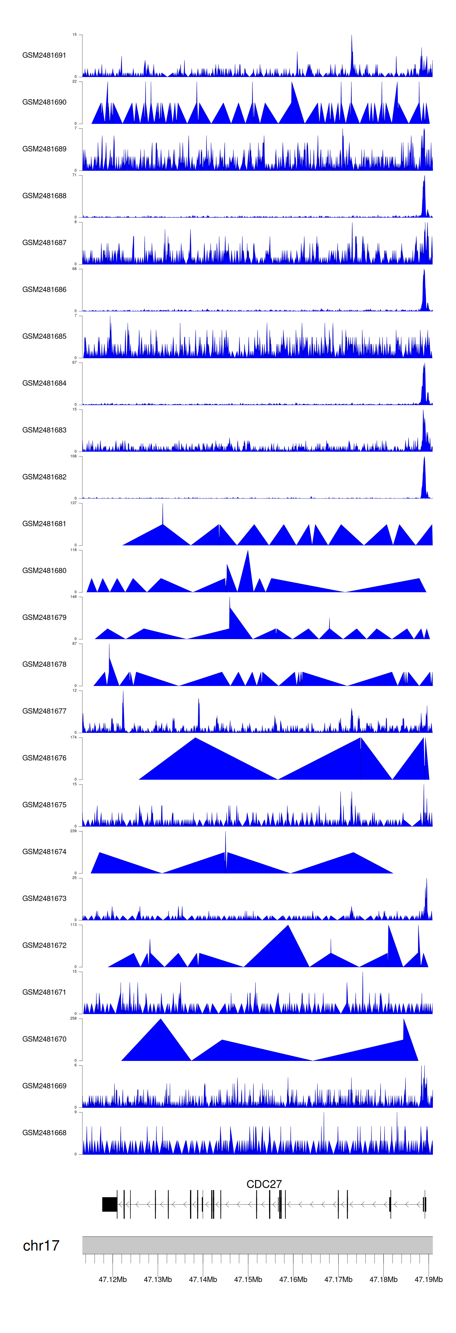 The protein encoded by this gene shares strong similarity with Saccharomyces cerevisiae protein Cdc27, and the gene product of Schizosaccharomyces pombe nuc 2. This protein is a component of the anaphase-promoting complex (APC), which is composed of eight protein subunits and is highly conserved in eukaryotic cells. This complex catalyzes the formation of cyclin B-ubiquitin conjugate, which is responsible for the ubiquitin-mediated proteolysis of B-type cyclins. The protein encoded by this gene and three other members of the APC complex contain tetratricopeptide (TPR) repeats, which are important for protein-protein interactions. This protein was shown to interact with mitotic checkpoint proteins including Mad2, p55CDC and BUBR1, and it may thus be involved in controlling the timing of mitosis. Alternative splicing of this gene results in multiple transcript variants. Related pseudogenes have been identified on chromosomes 2, 22 and Y. [provided by RefSeq, May 2014] |
