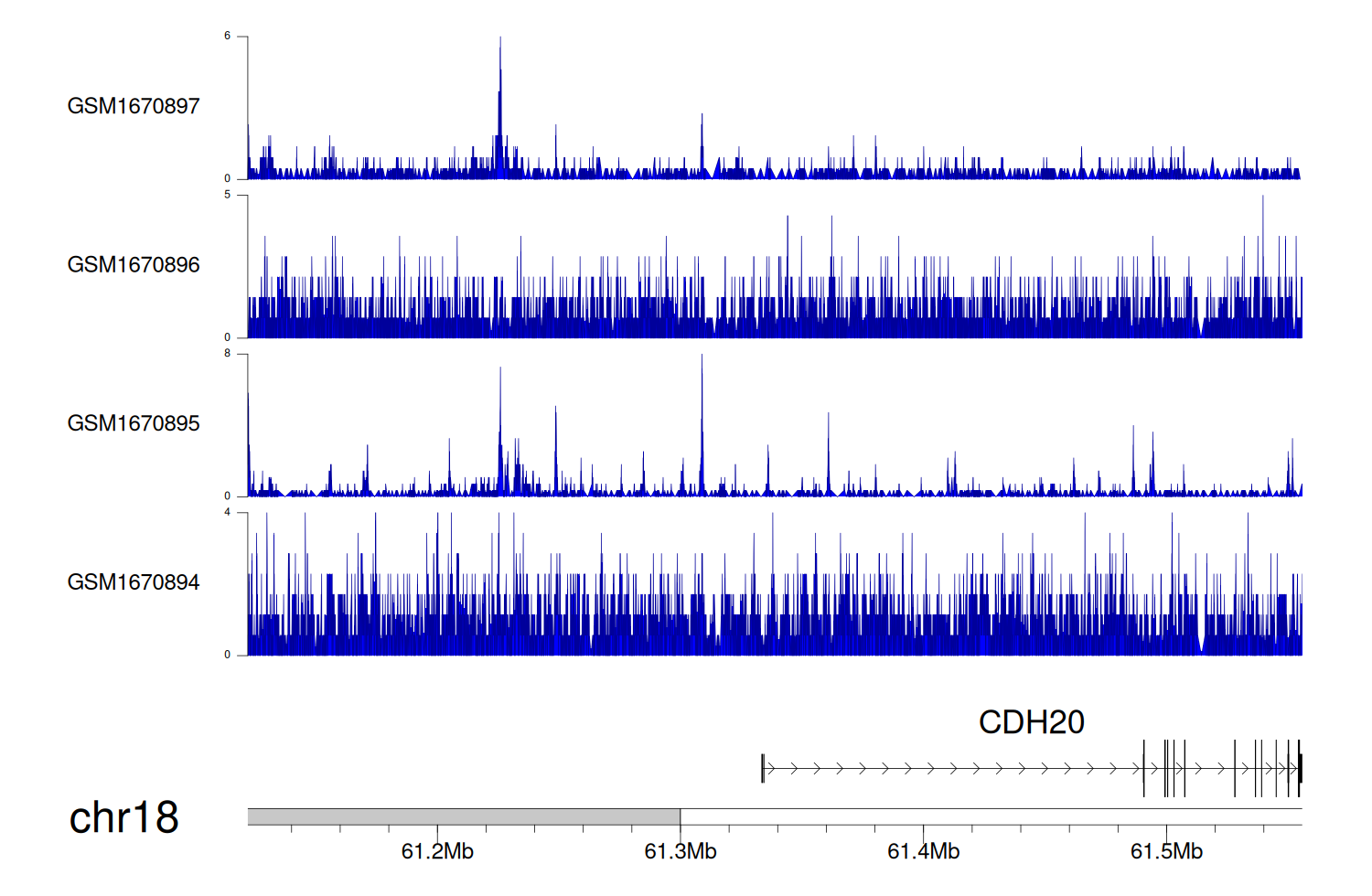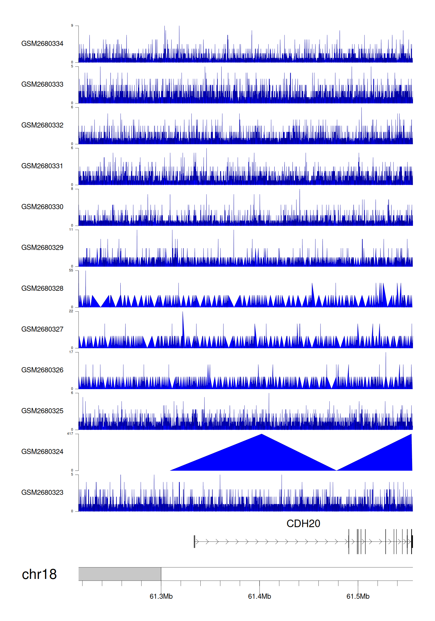 > Dataset: GSE68402 - CDH20 peak across samples